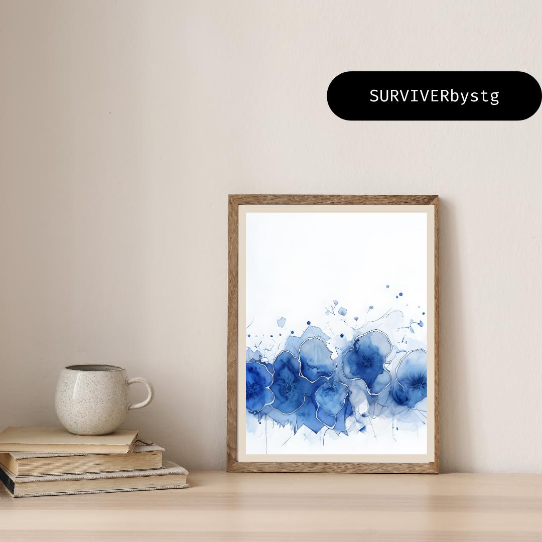 abstract floral print, digital flower art, printable wall decor, blue art print, minimalist wall art, A4 digital print, instant download art, modern botanical poster