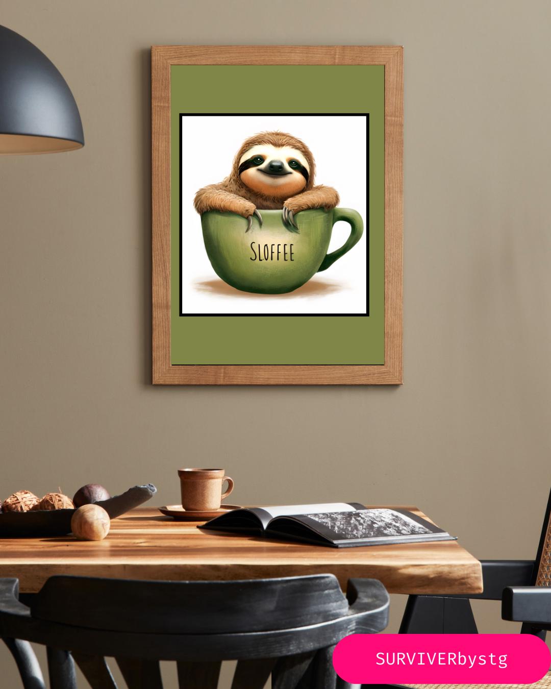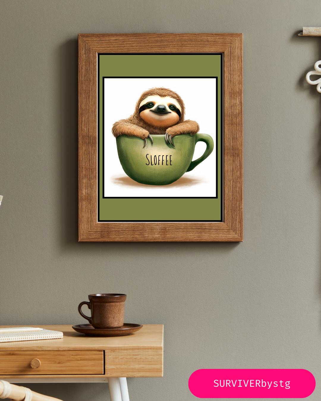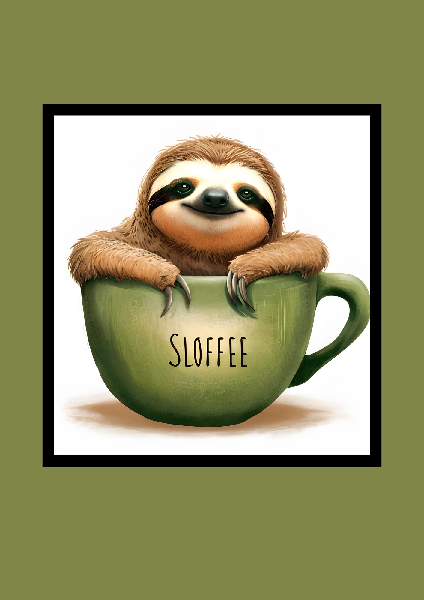 Start your day the slow and cozy way with this adorable "Sloffee" Sloth Coffee A4 Art Print! Perfect for coffee lovers, sloth fans, and anyone who enjoys a calm, playful vibe in their space.