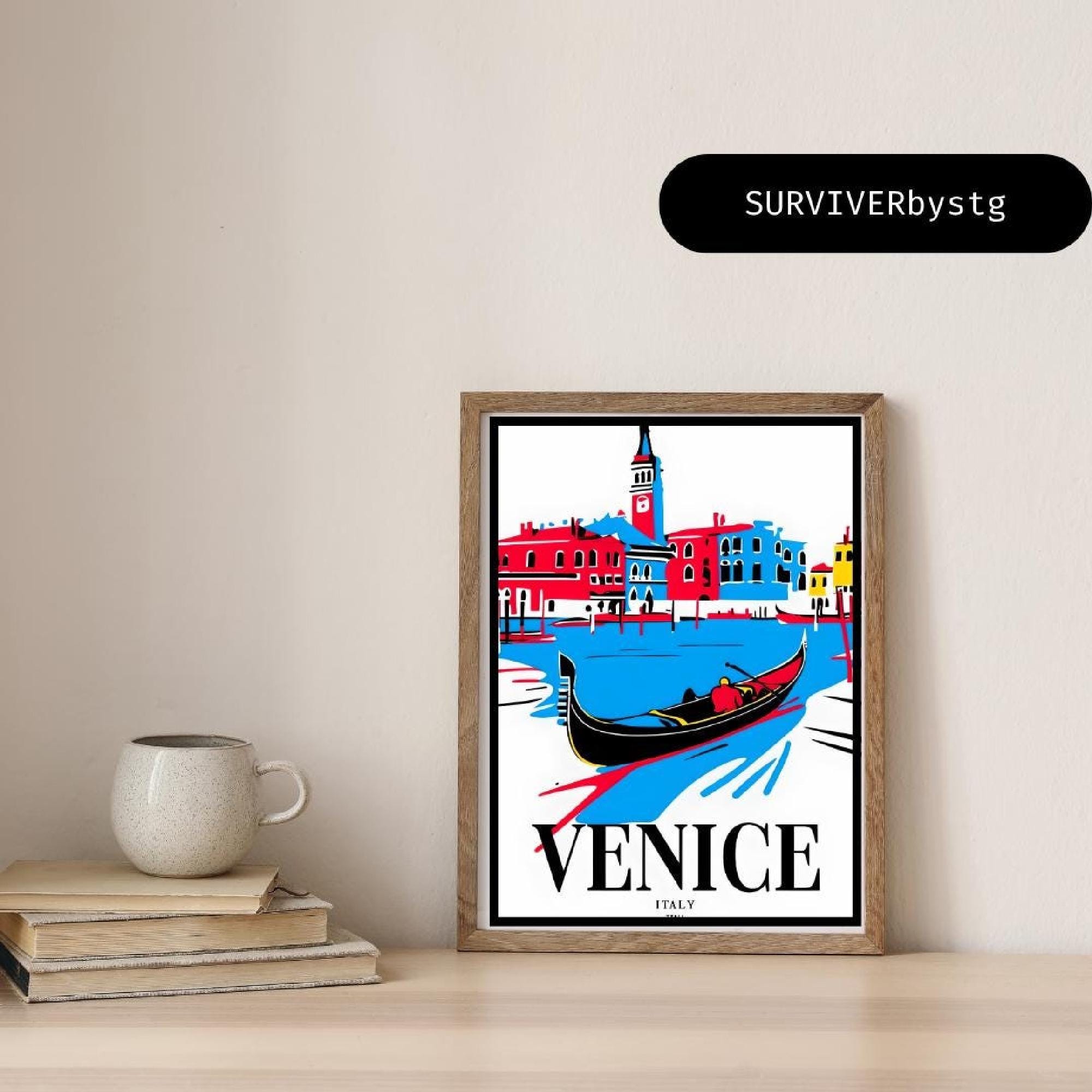 Each Italy travel print is designed to pop with colour, making it an eye-catching piece for anyone who loves unique gallery wall decor or wants a playful, graphic touch. This Venice wall art is ideal for celebrating Italian flair at home, and works beautifully anywhere you want some bold, artful inspiration.