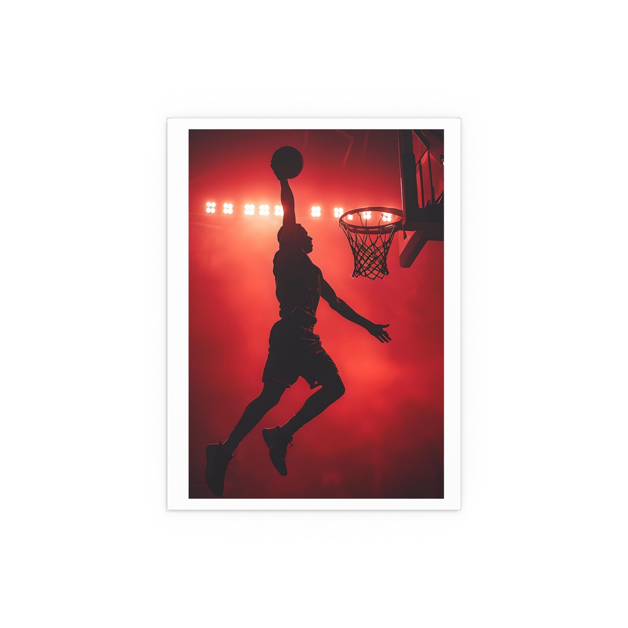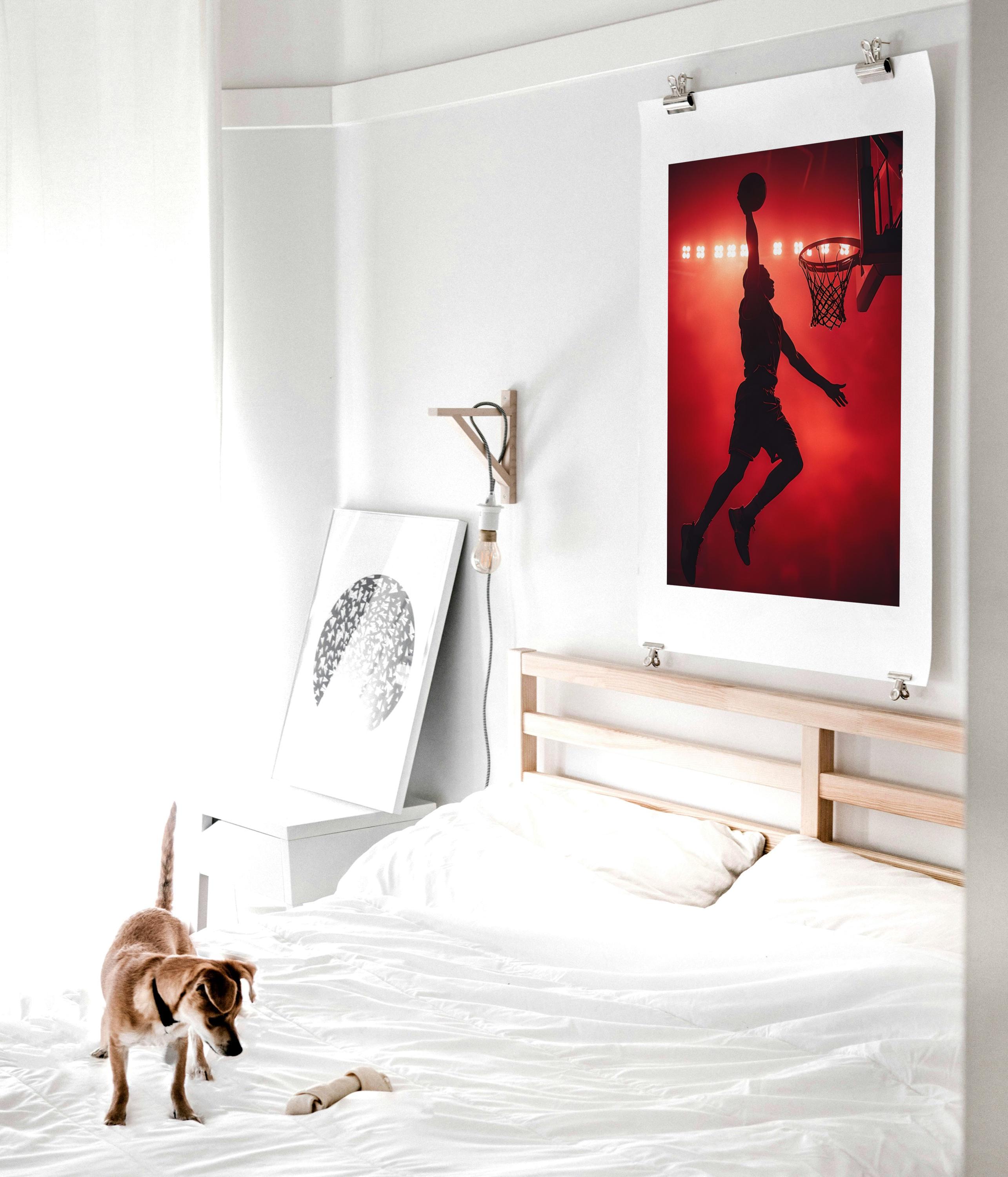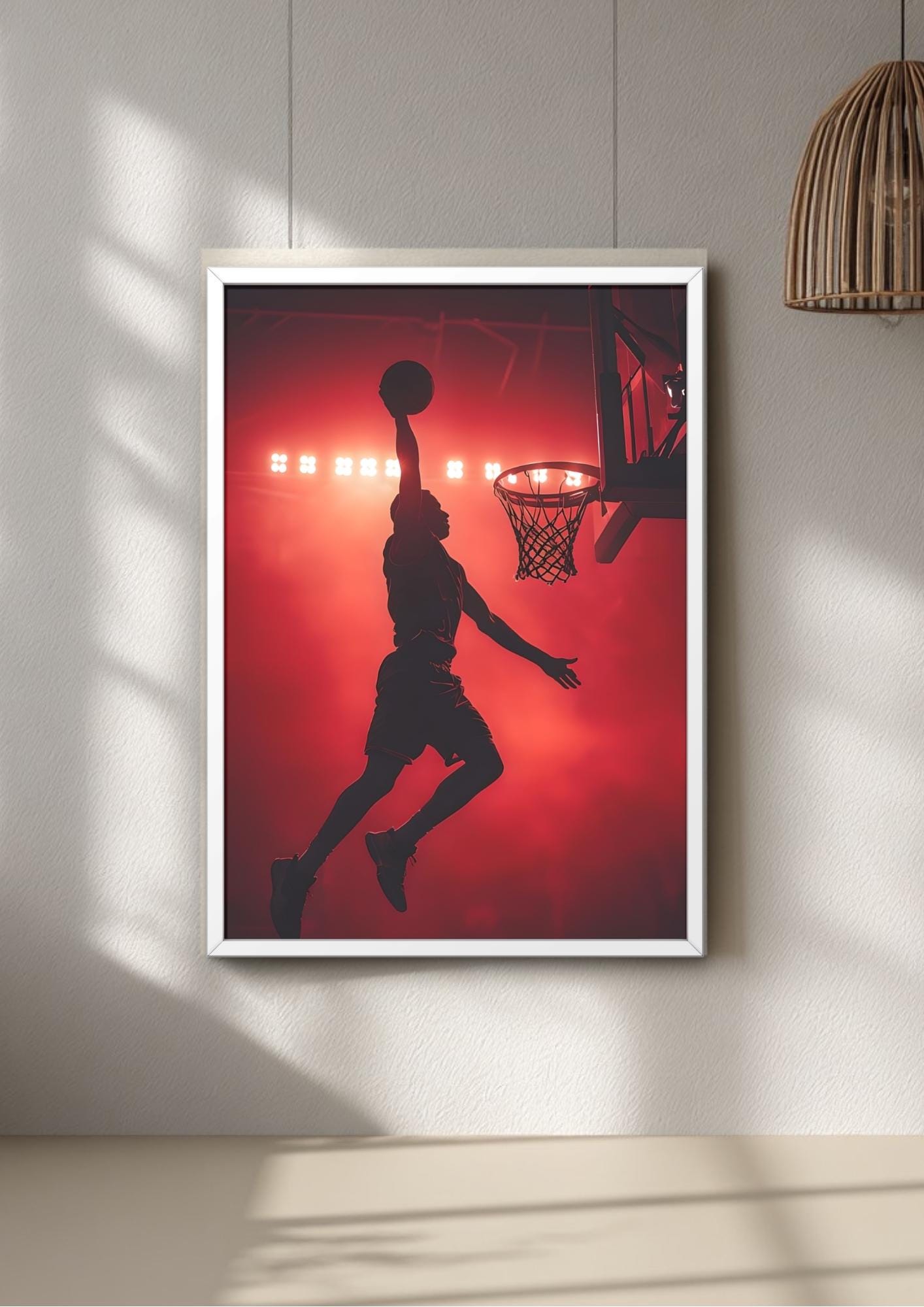 Add bold energy to your home or office with this basketball dunk silk poster. Featuring a basketball player caught mid-air under arena lights, this indoor art print captures the excitement of the nba league in a contemporary design. It adds instant style to your wall art for room, turning any space into a modern home art gallery.