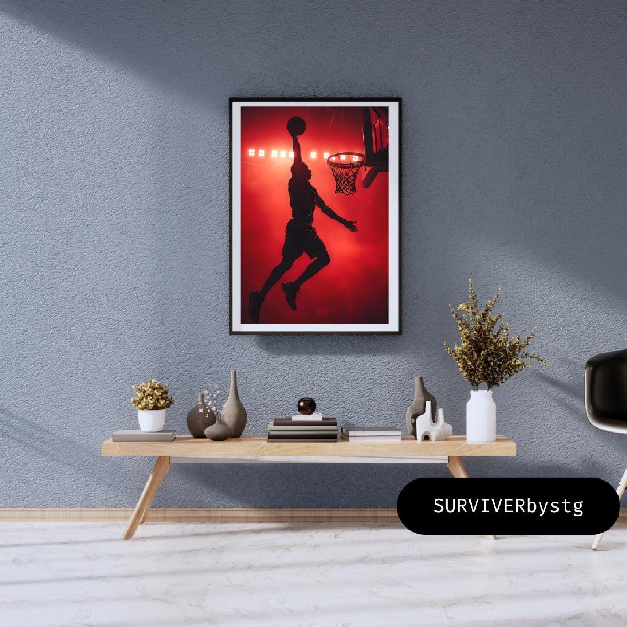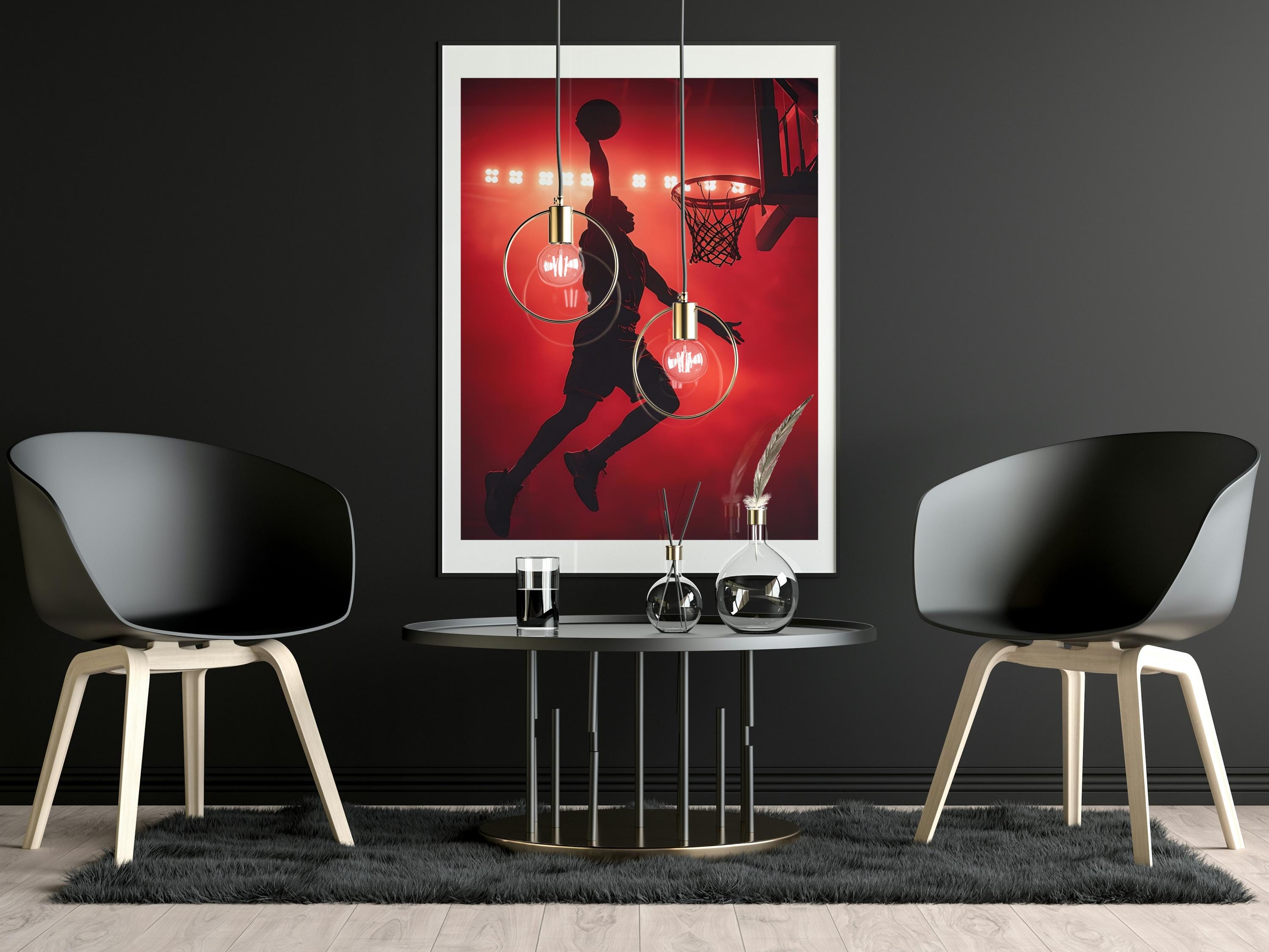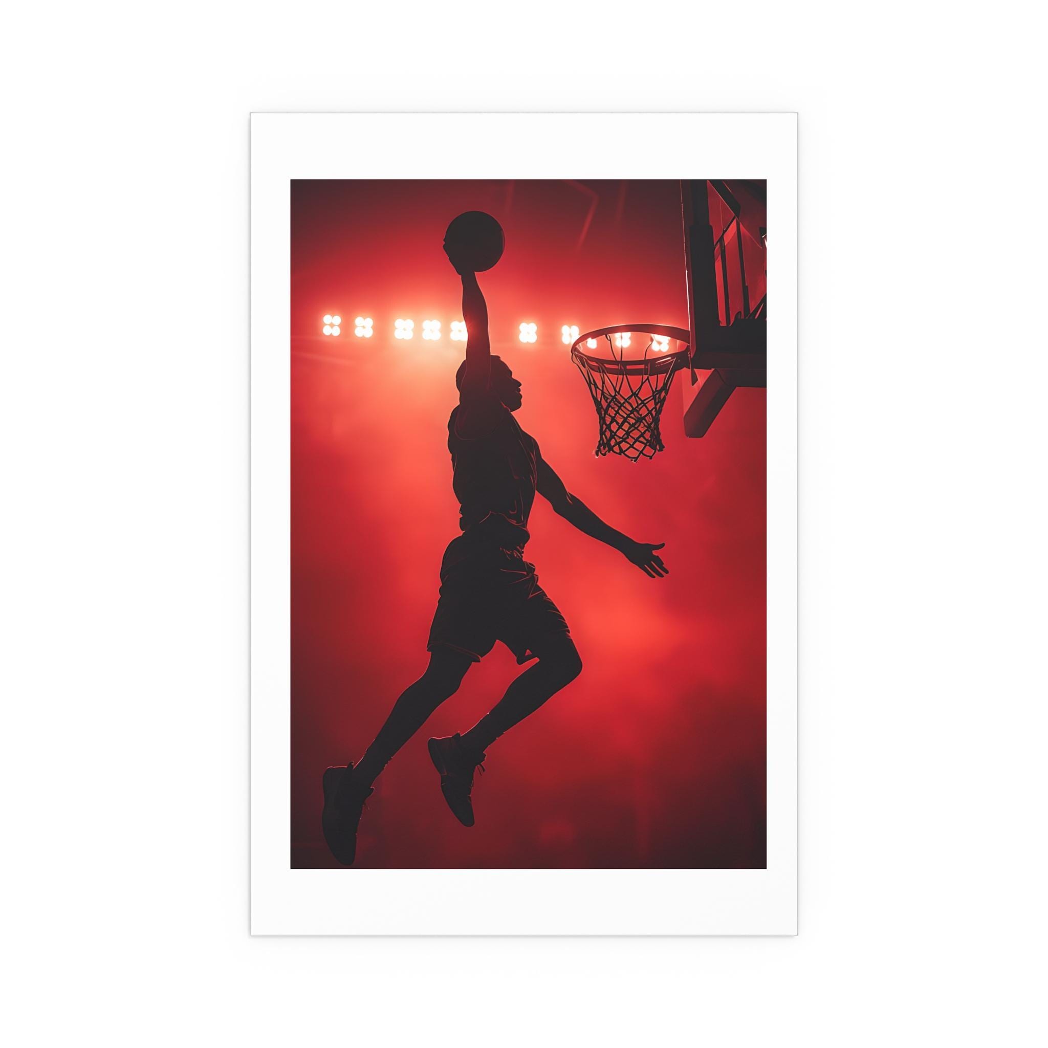 Add bold energy to your home or office with this basketball dunk silk poster. Featuring a basketball player caught mid-air under arena lights, this indoor art print captures the excitement of the nba league in a contemporary design. It adds instant style to your wall art for room, turning any space into a modern home art gallery.