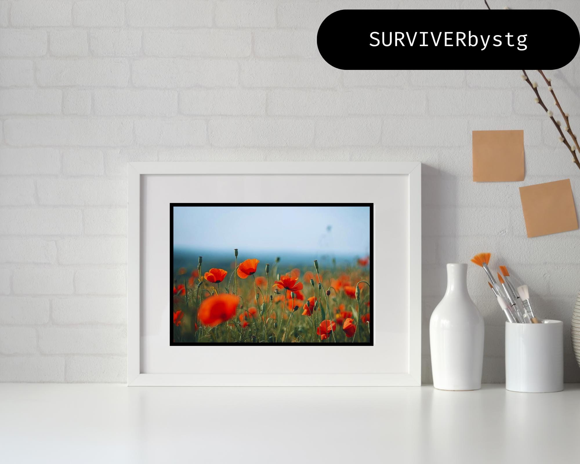 Bright, bold, and full of life — this Poppy Field Dreams digital print captures the beauty and resilience found in nature. The vibrant red poppies swaying under a soft sky remind us that even in quiet moments, strength and hope bloom again.