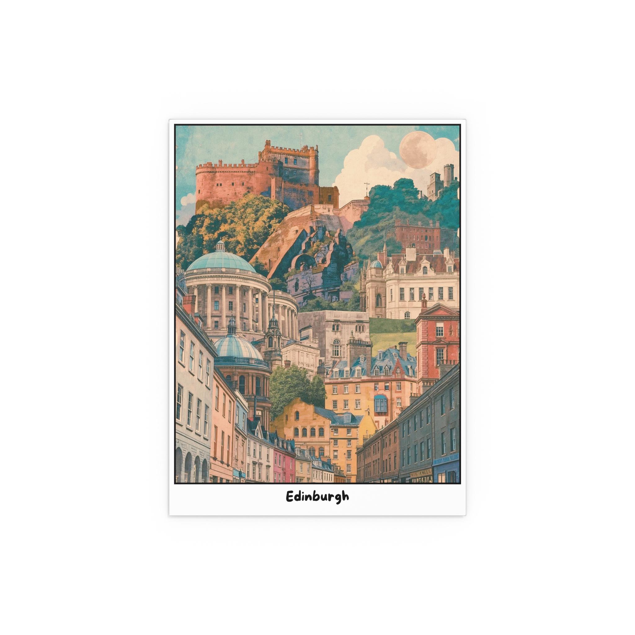 Immerse yourself in the beauty of Edinburgh with this vibrant and durable poster featuring a collage of landmark places. Perfect for anyone who loves travel or Scottish culture, this poster can be displayed indoors or outdoors, making it ideal for decorating your home, office, or garden room. Celebrate your love for Edinburgh during holidays or any special occasion with this water and scratch-resistant piece of art.