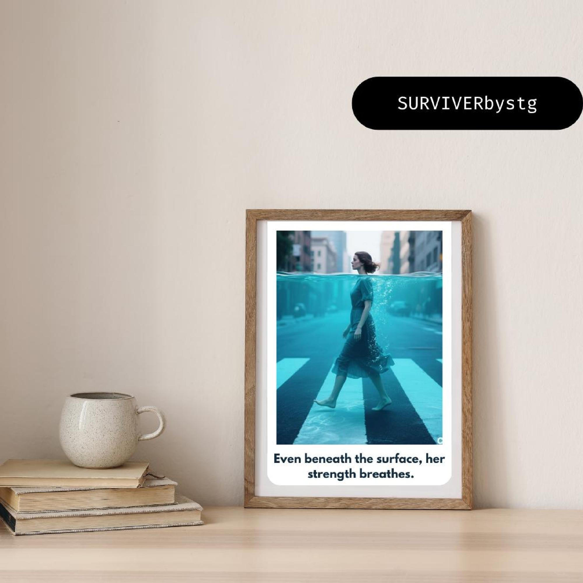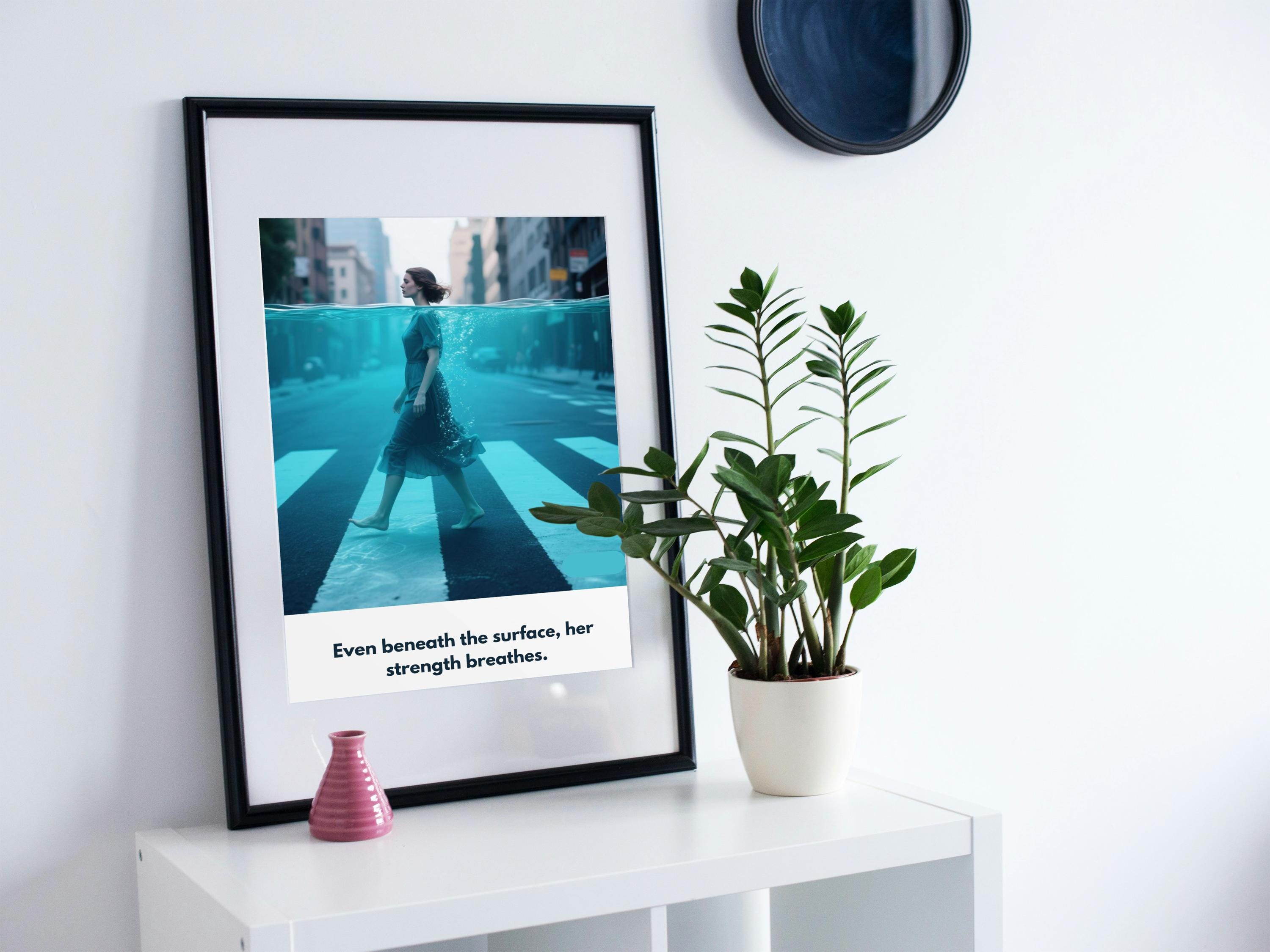 Bring a touch of inspiration to your space with this modern wall decor. This digital print features contemporary art with an ocean effect print, showing a woman walking through water—an image that radiates calm and quiet strength. It’s more than just art—it’s a daily reminder of your resilience and self-belief.