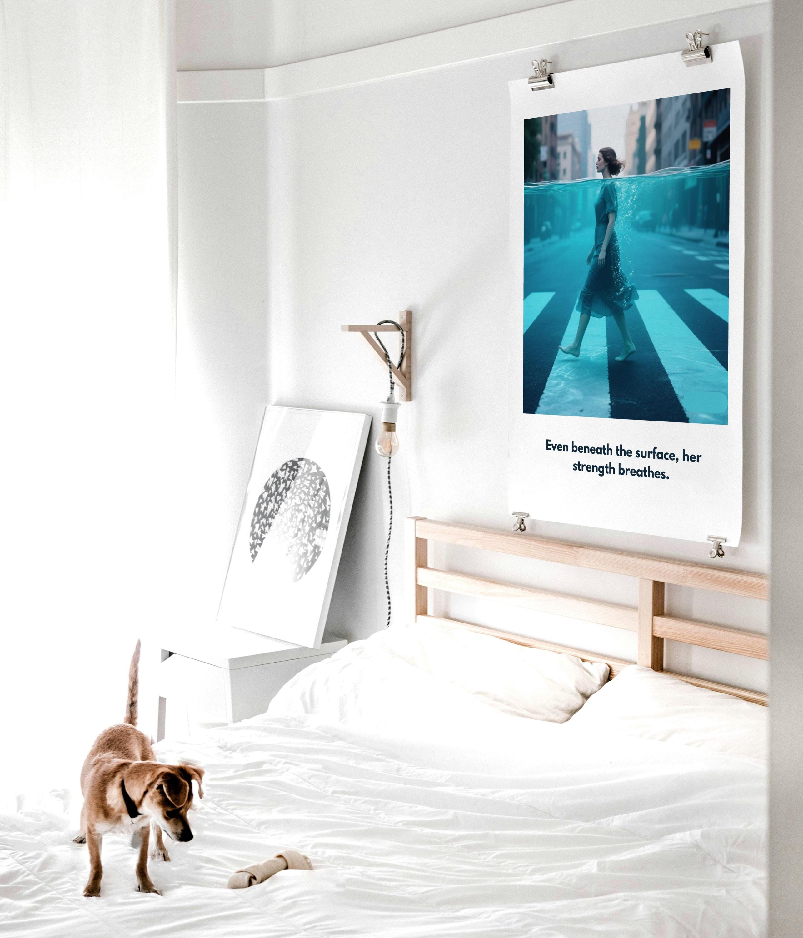 Bring a touch of meaning and style to your space with this modern wall decor inspired by abstract surrealism. “She Walks Through Water” is more than just pretty—it’s empowerment art that celebrates quiet strength and resilience.