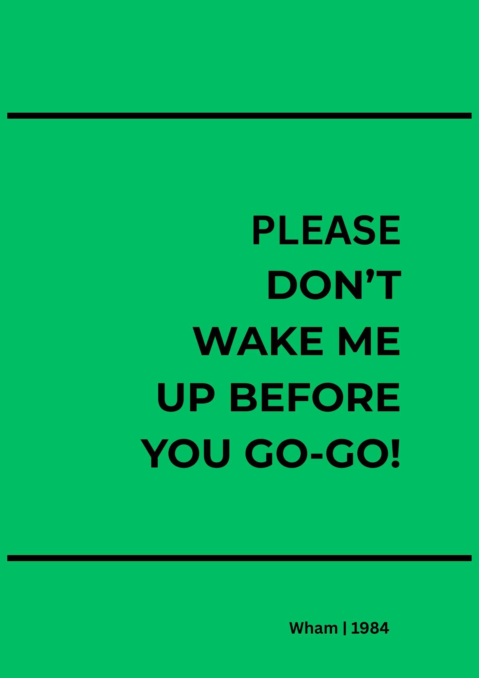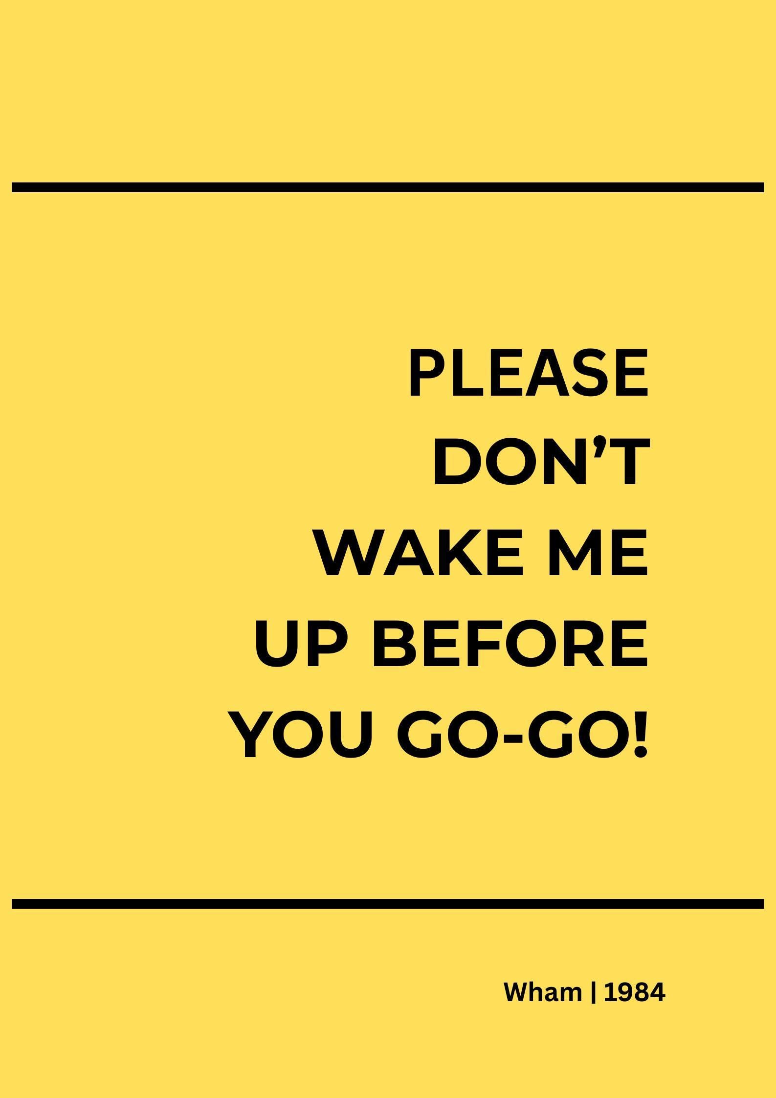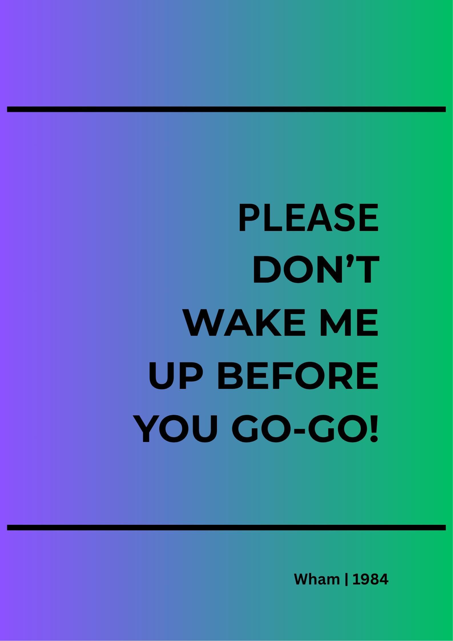 Bring colour, nostalgia and iconic pop music into your home with this Wake Me Up Before You Go-Go lyric poster by Wham. Inspired by one of the most recognisable songs of the 1980s, this retro music wall art print blends playful energy with a clean, modern design.