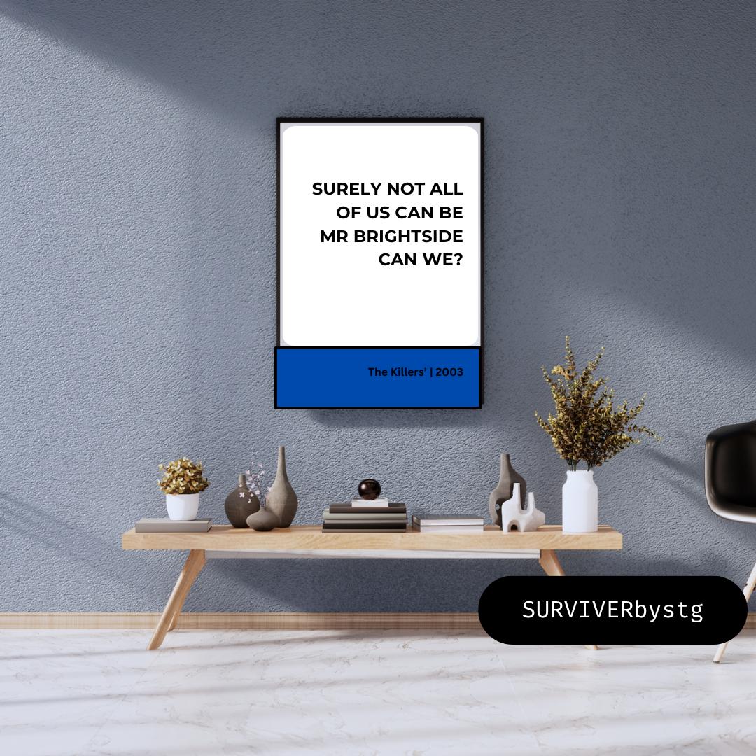 Bring the energy of one of the most iconic indie-rock anthems into your space with this Mr Brightside lyric poster, inspired by The Killers. Featuring bold typography and a clean minimalist design, this print makes a striking statement in any room.