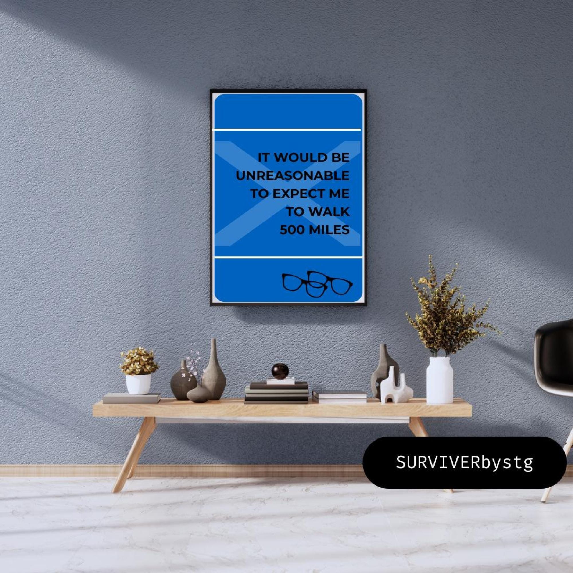Celebrate Scottish music and iconic humour with this “500 Miles” lyric poster by The Proclaimers, designed as a modern and playful piece of Scottish wall art. Inspired by the famous song and its unmistakable charm, this print adds personality and fun to any interior.