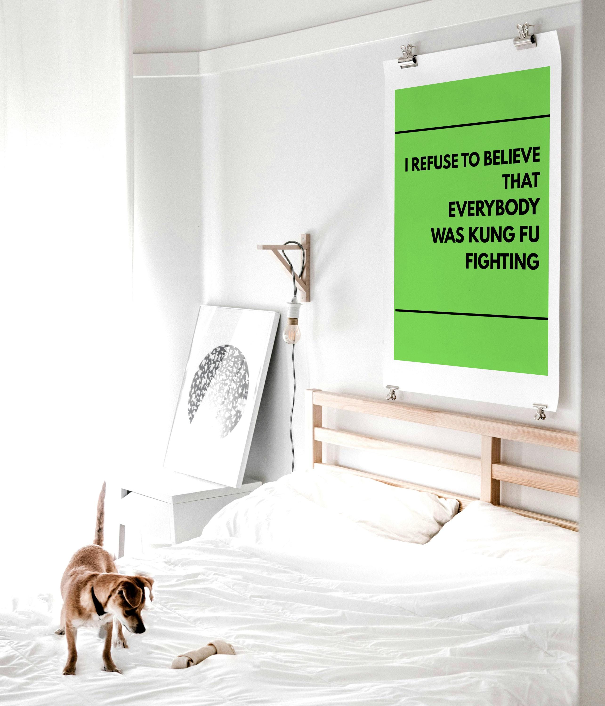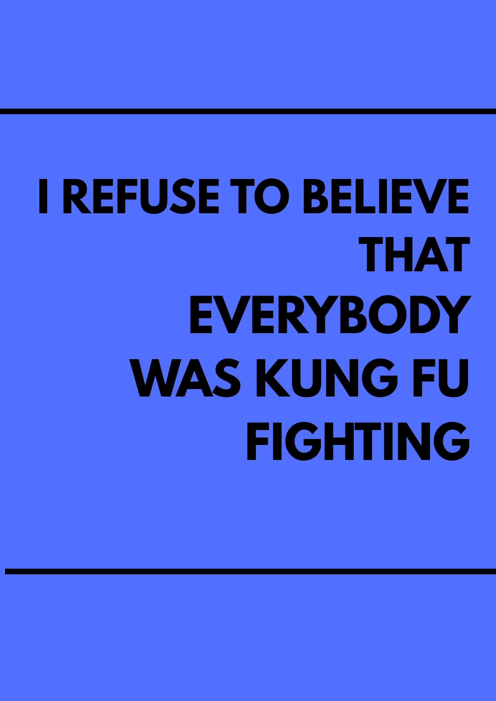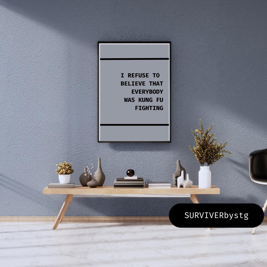 A funny Kung Fu Fighting Poster, perfect for outdoor use. Ideal for adding a touch of humor to any space. Great for decorating bedrooms, living rooms, or even martial arts dojos. Perfect for birthdays, movie nights, or martial arts-themed parties.
