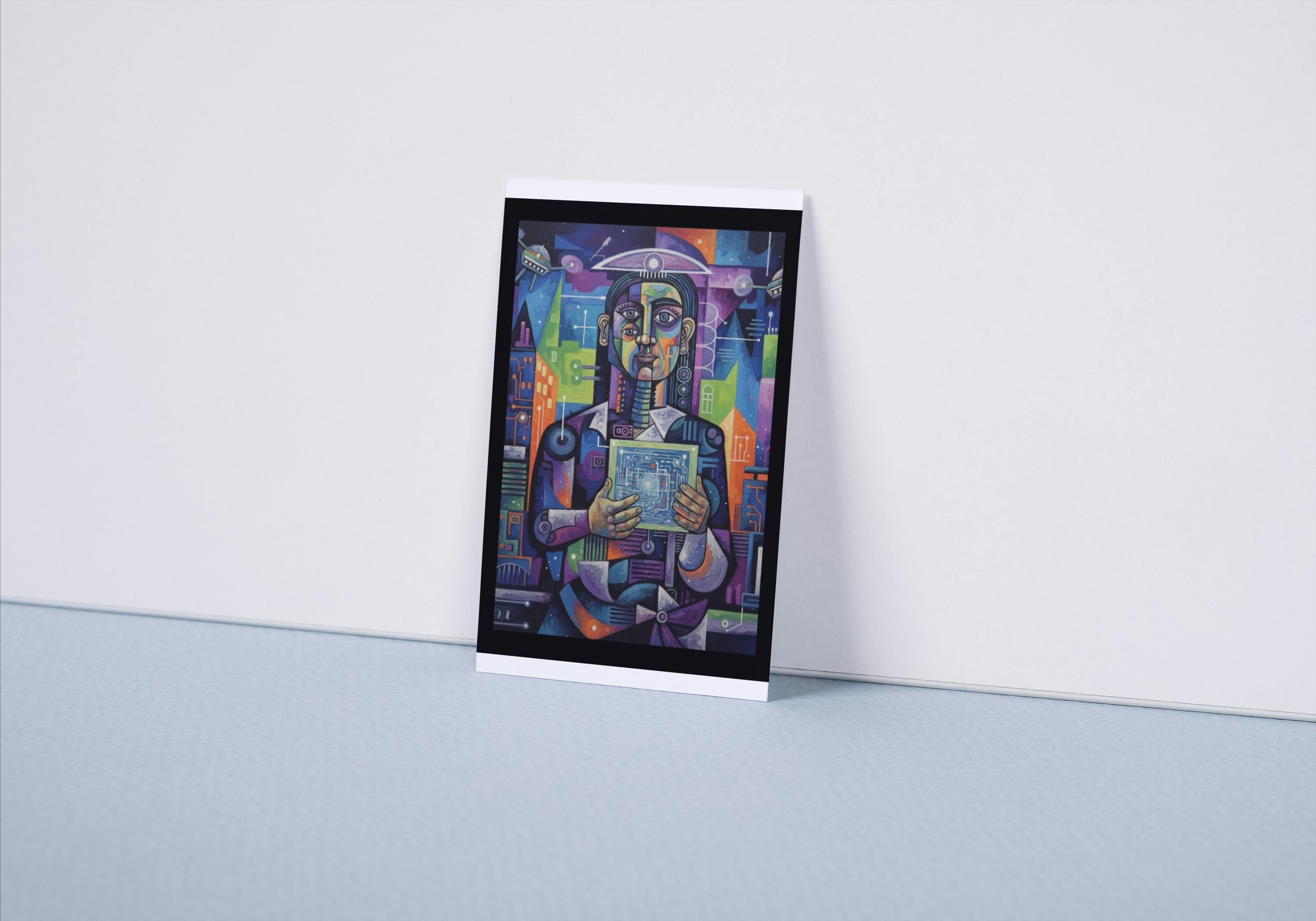 Perfect for fans of sci-fi, tech art, and abstract futurism, this digital print brings a burst of color and conceptual intrigue to any space. Whether you're decorating a gaming room, creative studio, or modern living area, this piece sparks conversation and celebrates the fusion of humanity and machine intelligence.