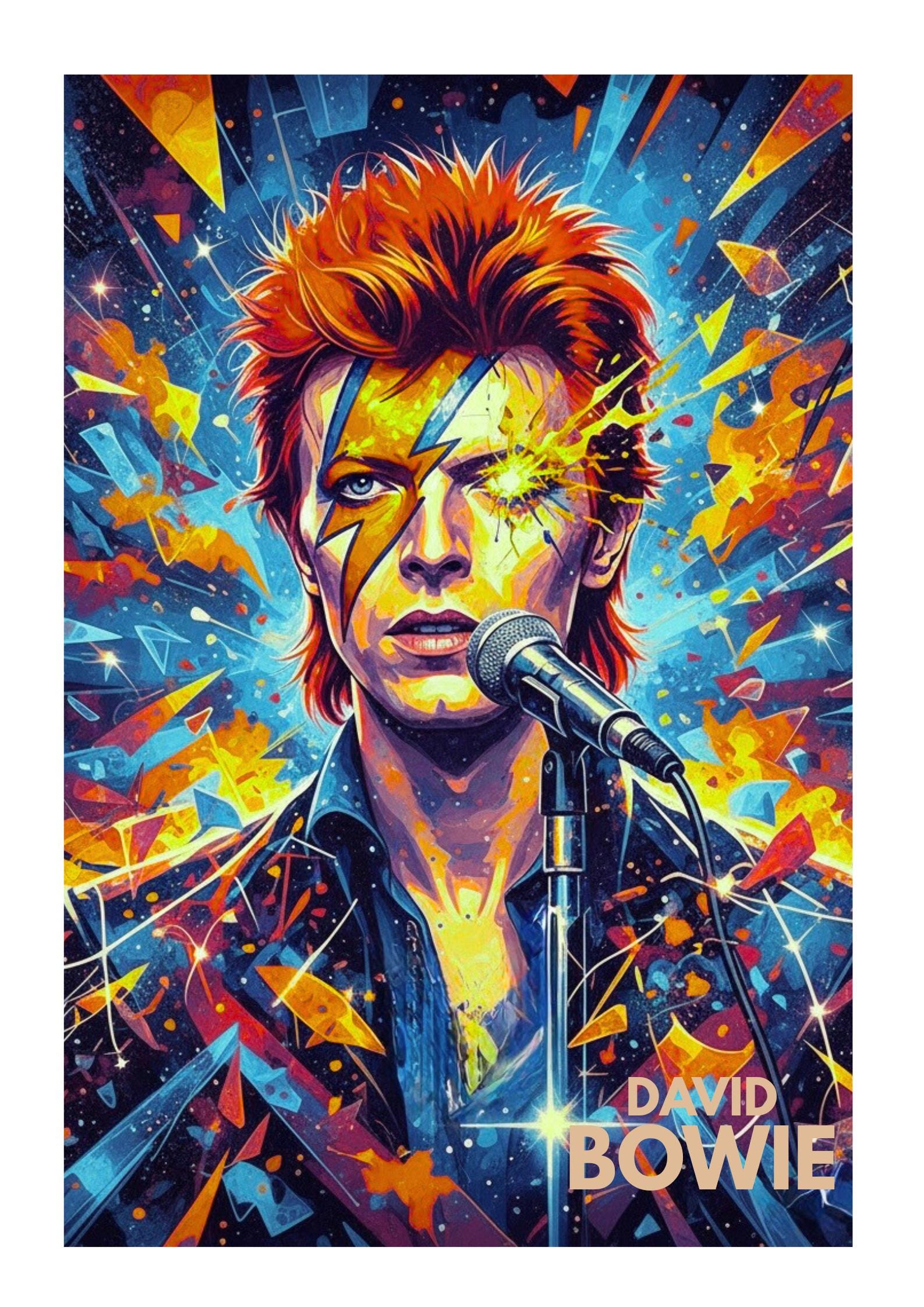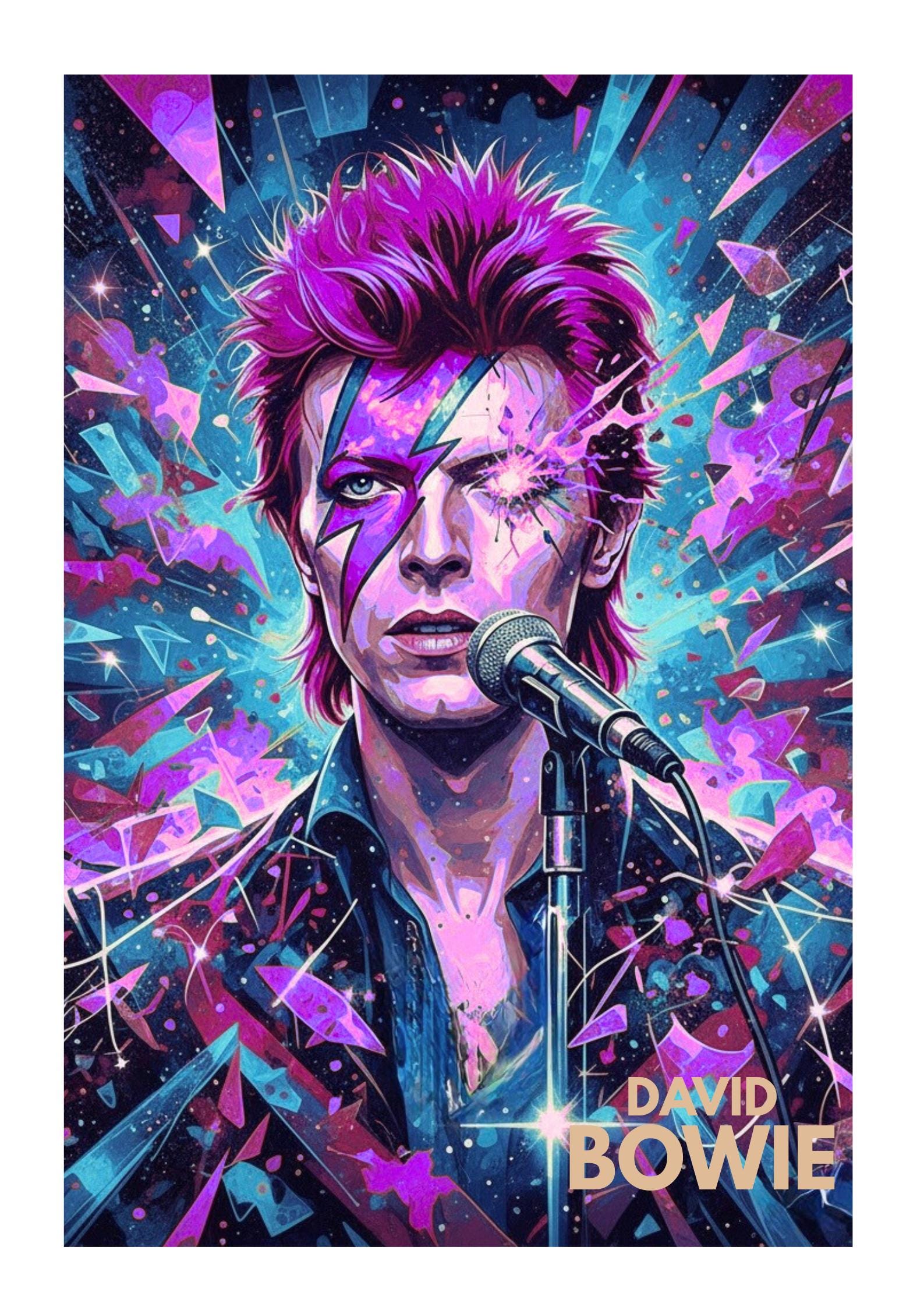 Bring the magic, mystery and musical brilliance of Bowie into your home with this Iconic Bowie Ziggy Art Print. Designed in bold, electric colours, this digital artwork captures the energy, charisma and legendary style of one of music’s most influential icons.