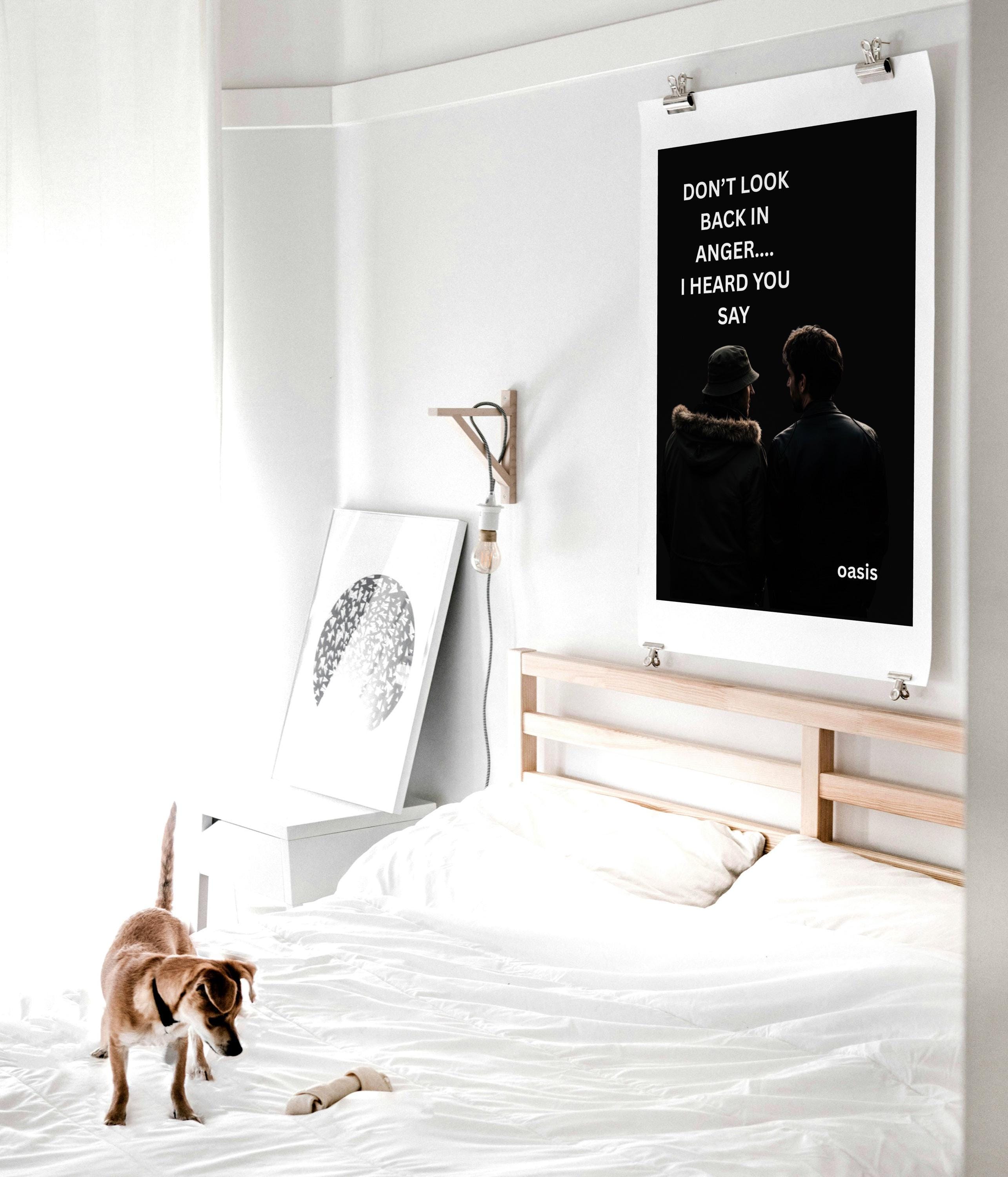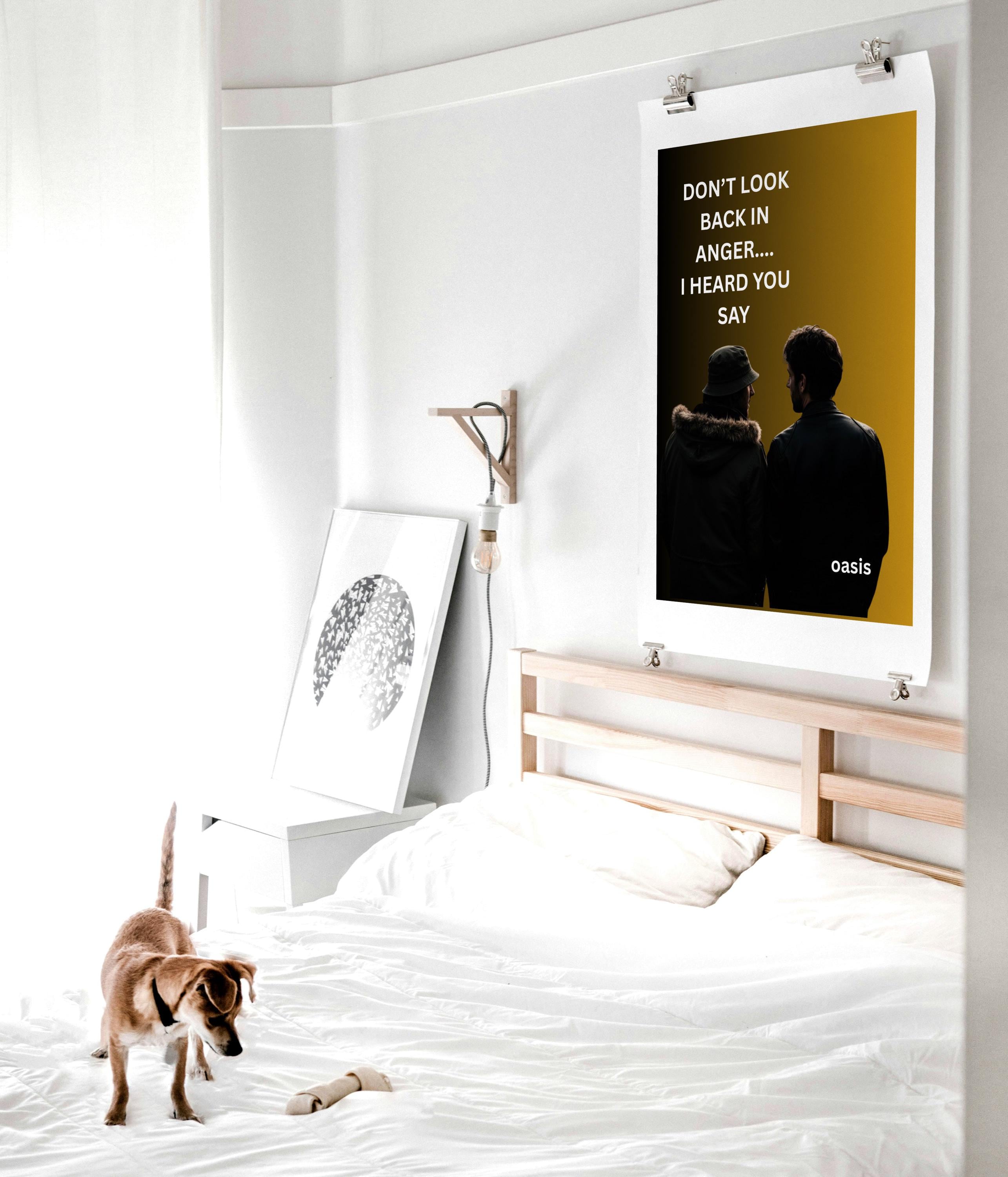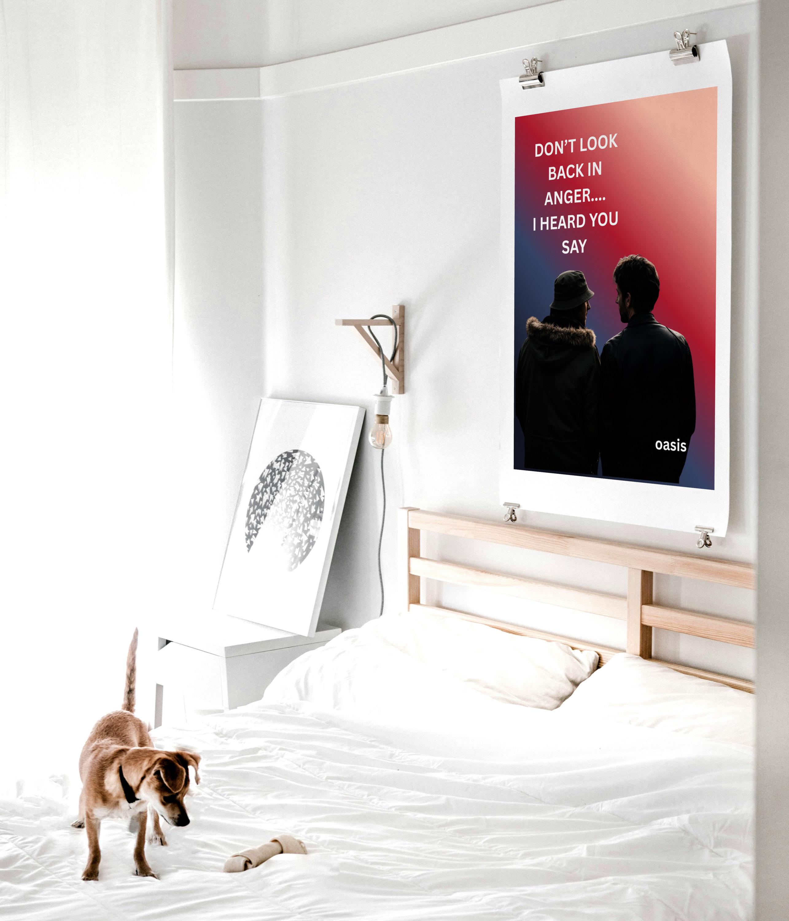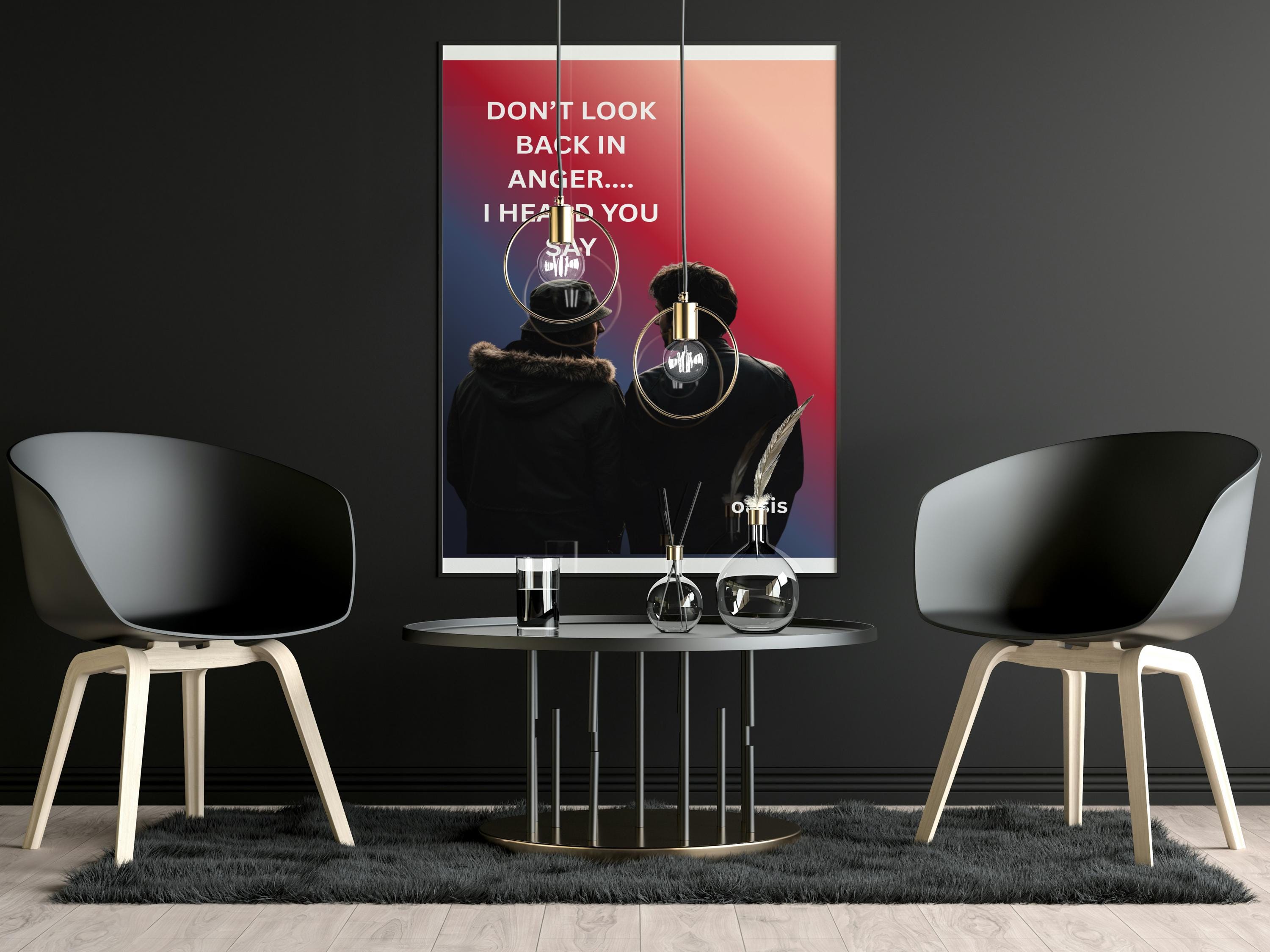 Celebrate one of the defining songs of the Britpop era with this “Don’t Look Back in Anger” lyric poster by Oasis. Featuring a moody background and subtle 90s-inspired silhouettes, this artwork captures the attitude, emotion and cultural impact of a true British rock classic.