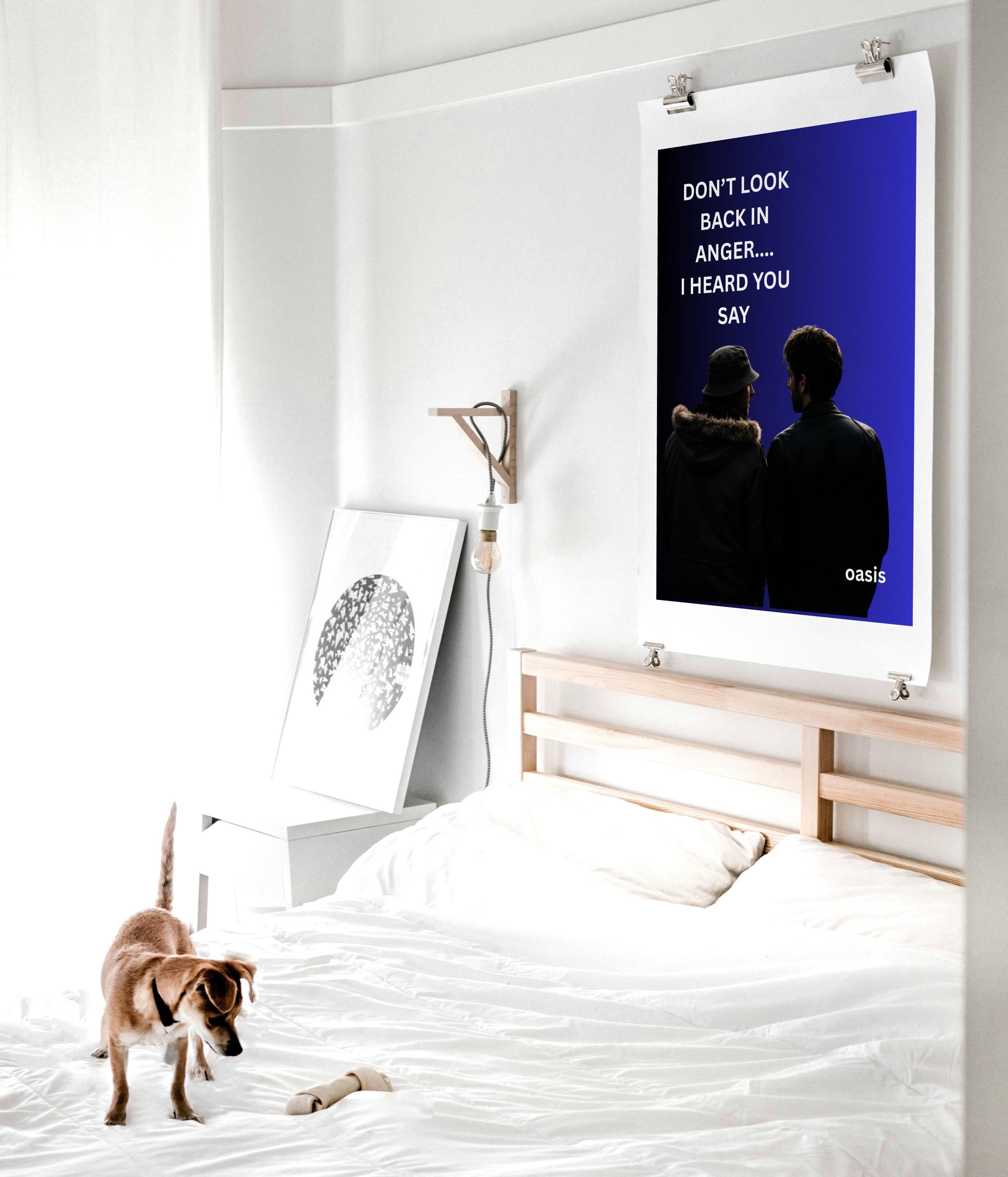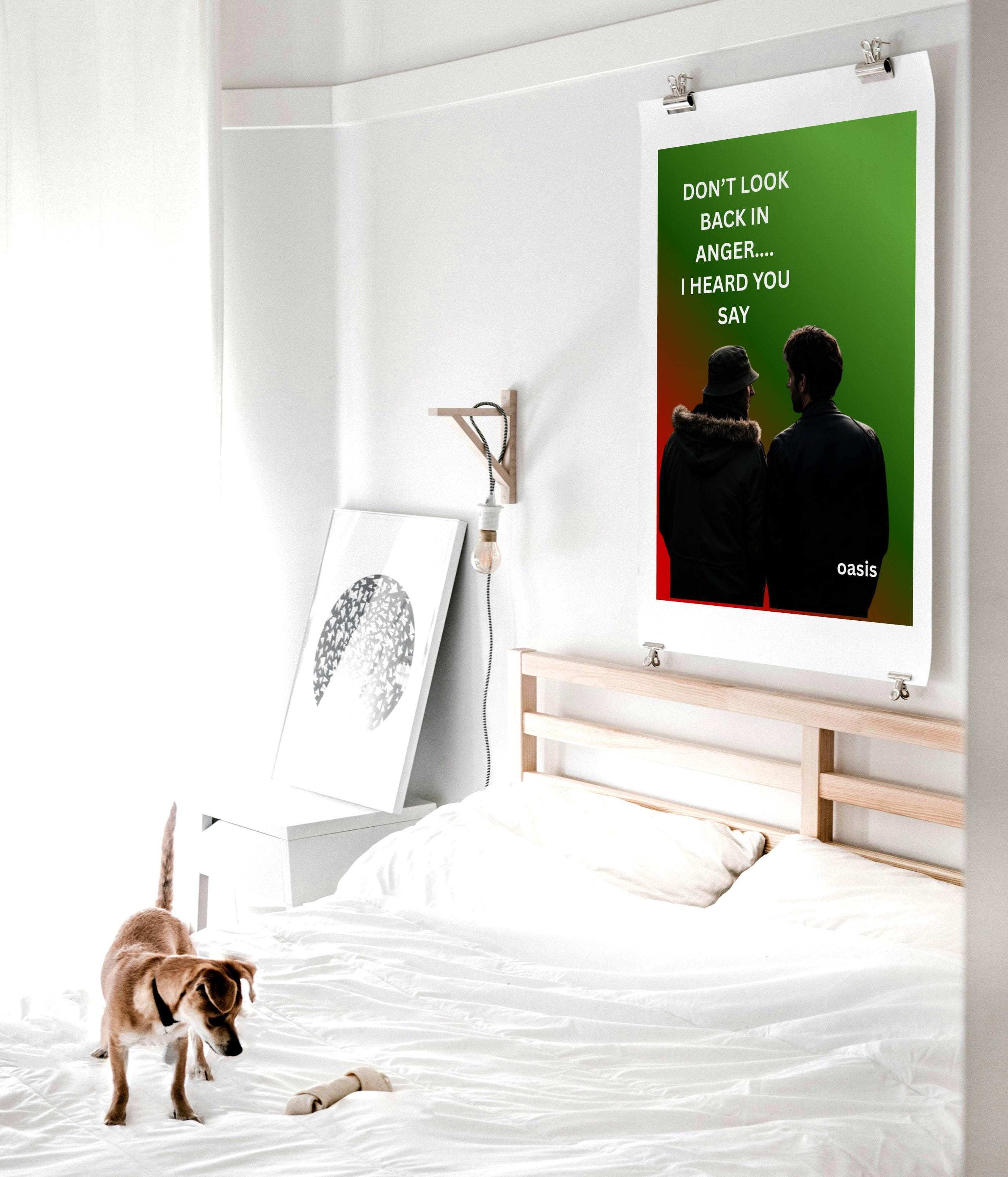Designed for music-themed interiors, studios and modern living spaces, this Britpop wall art print appeals to fans of Oasis, the Gallagher brothers and iconic 90s music. Available in multiple colour options and sizes, it works beautifully as a statement piece or as part of a curated gallery wall.