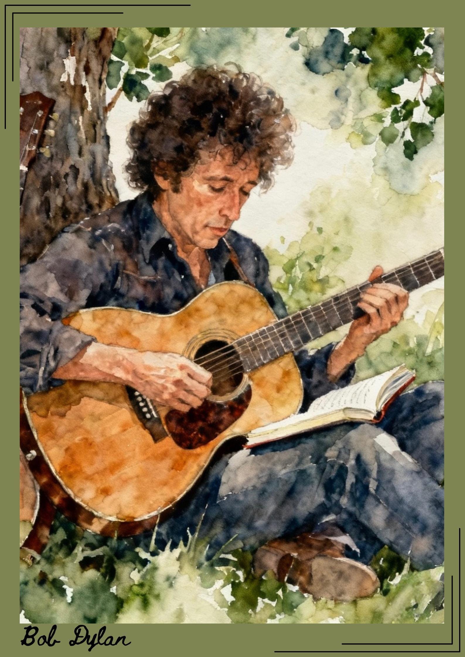 Bob Dylan Watercolour Guitar Art Print – Folk Songwriter Wall Art
