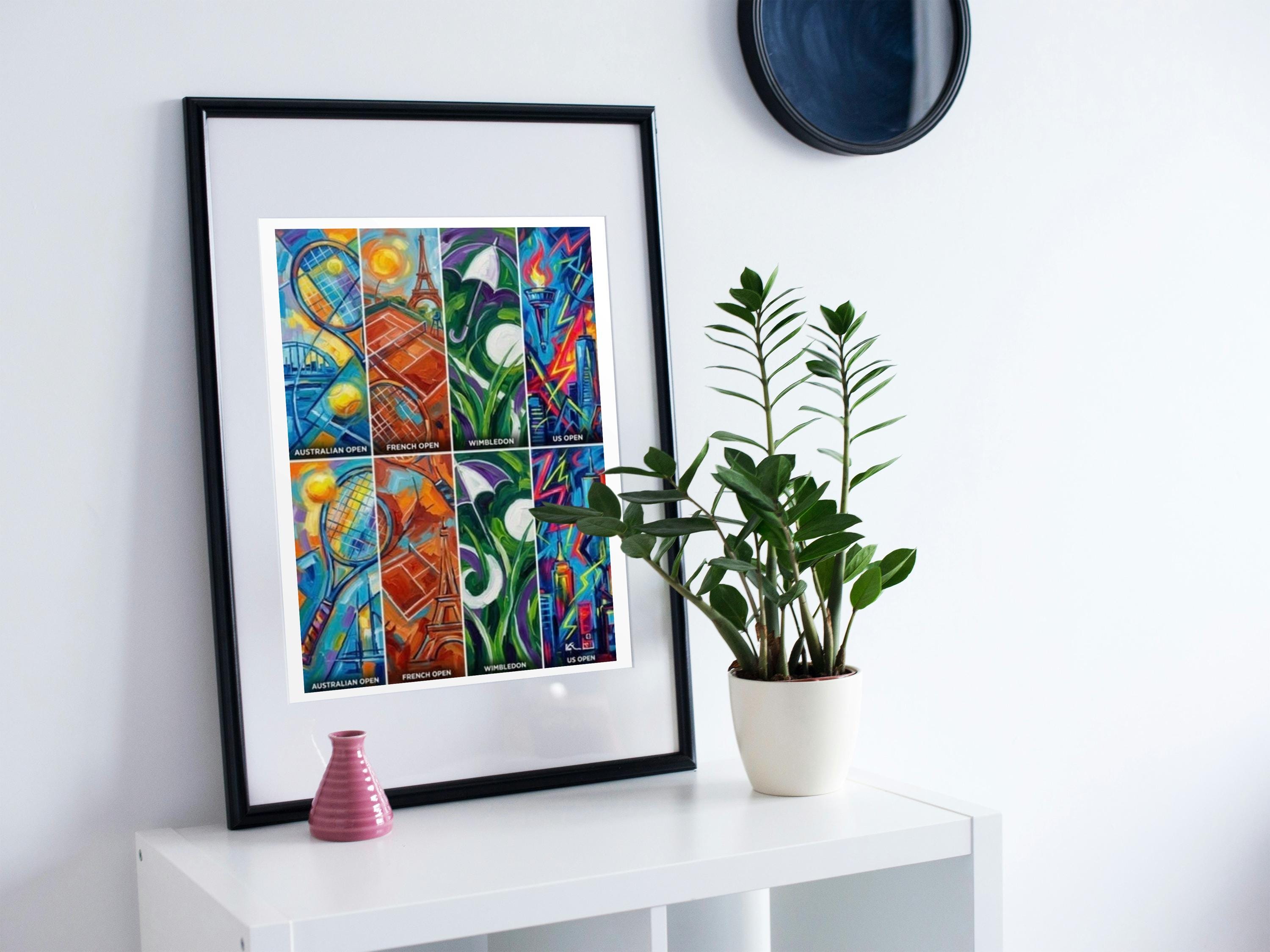 Designed for modern interiors, this piece works equally well as a statement artwork or part of a curated sports-art collection, appealing to tennis fans who appreciate strong graphic design and contemporary illustration about the game.
