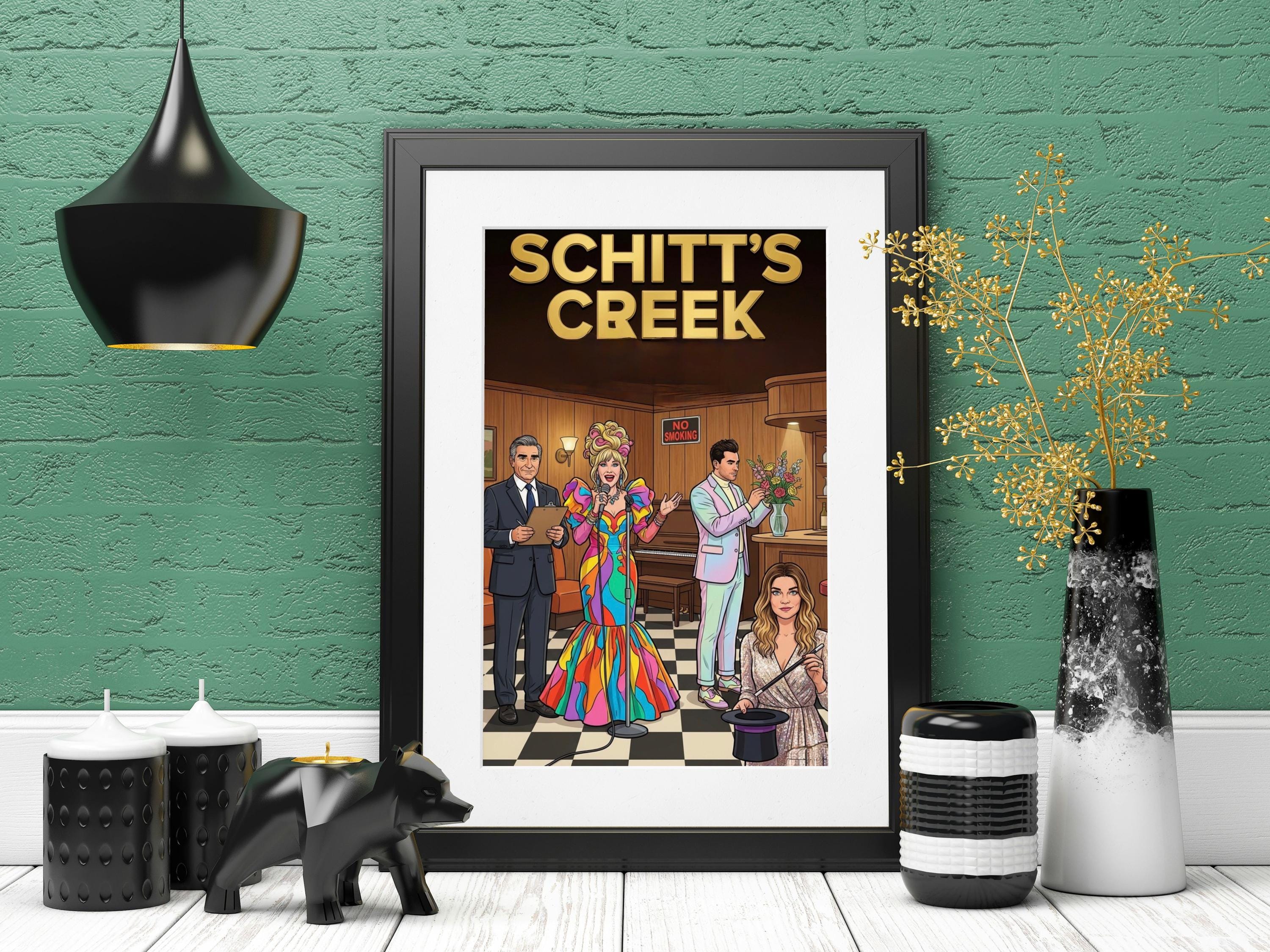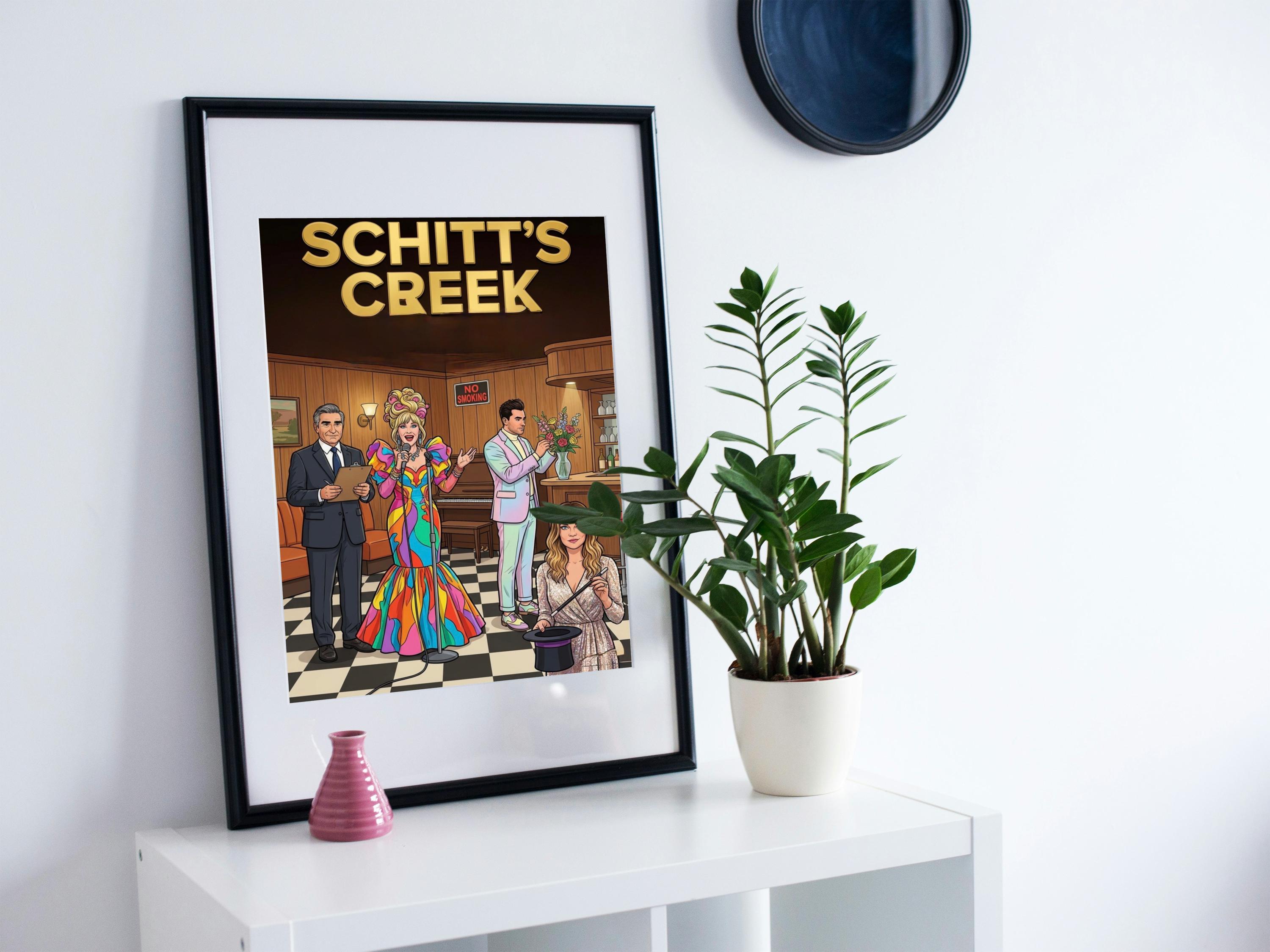 Treat yourself or a fellow fan to a stylish funny art piece that instantly brightens your wall. This print is a fun pop culture highlight for anyone who loves Schitts Creek.