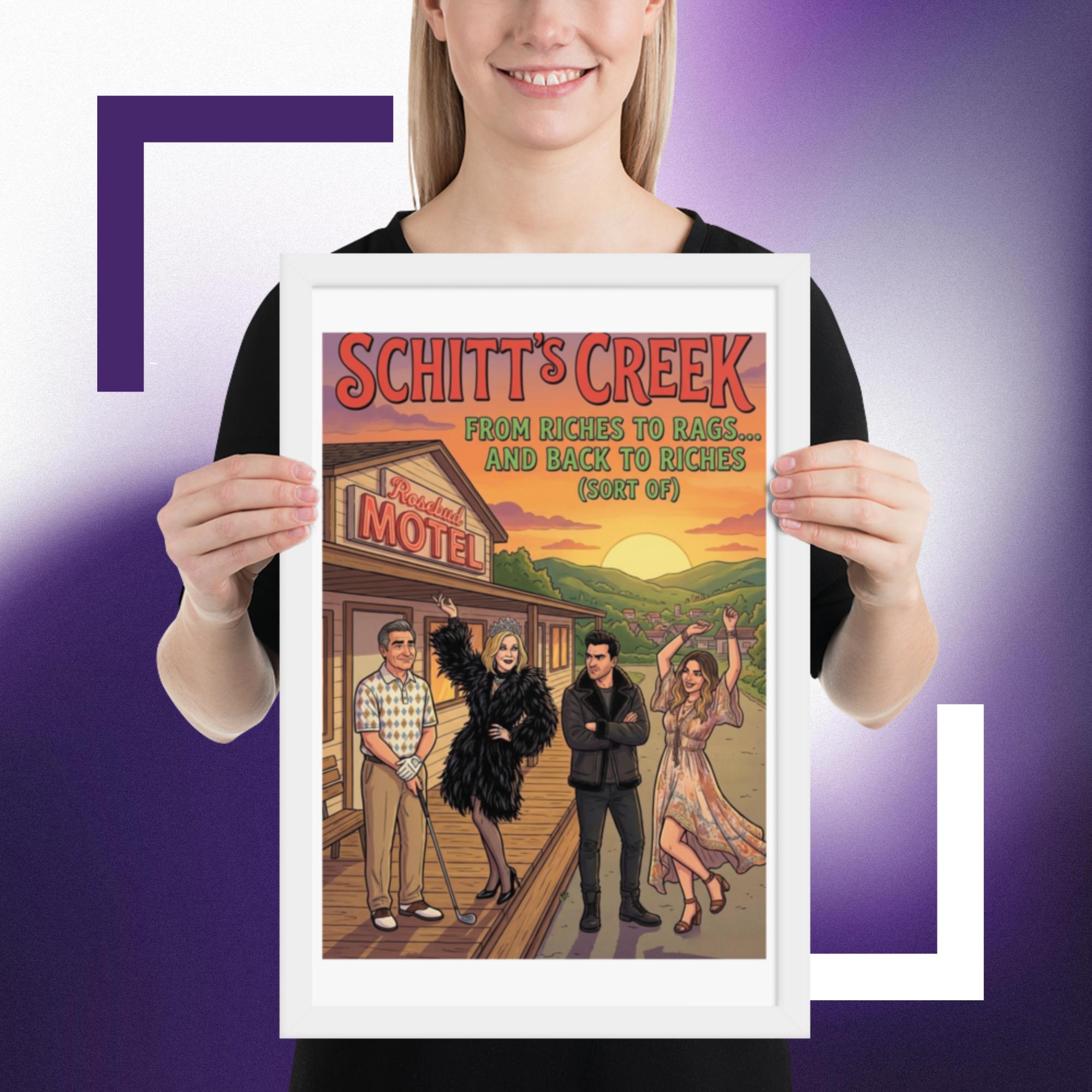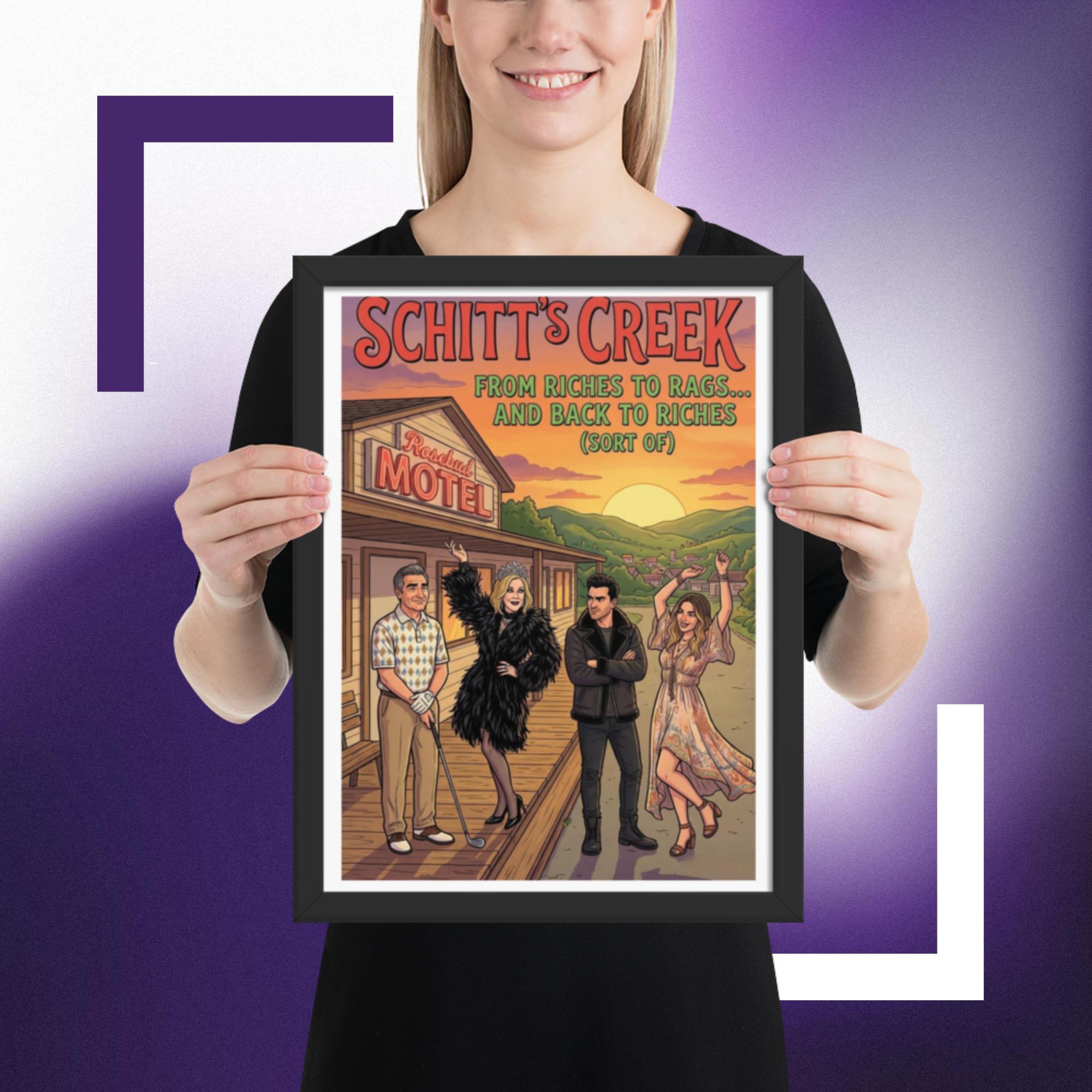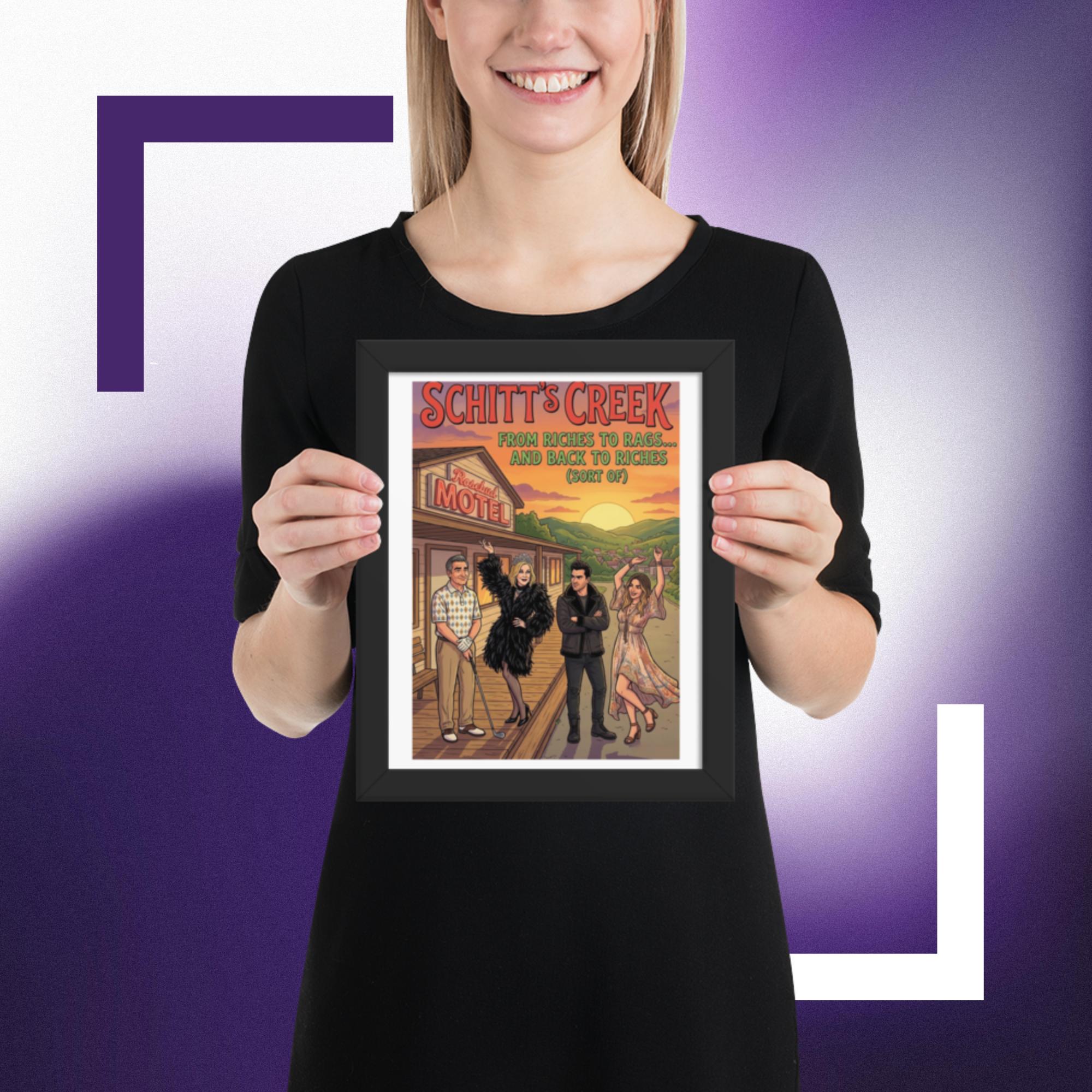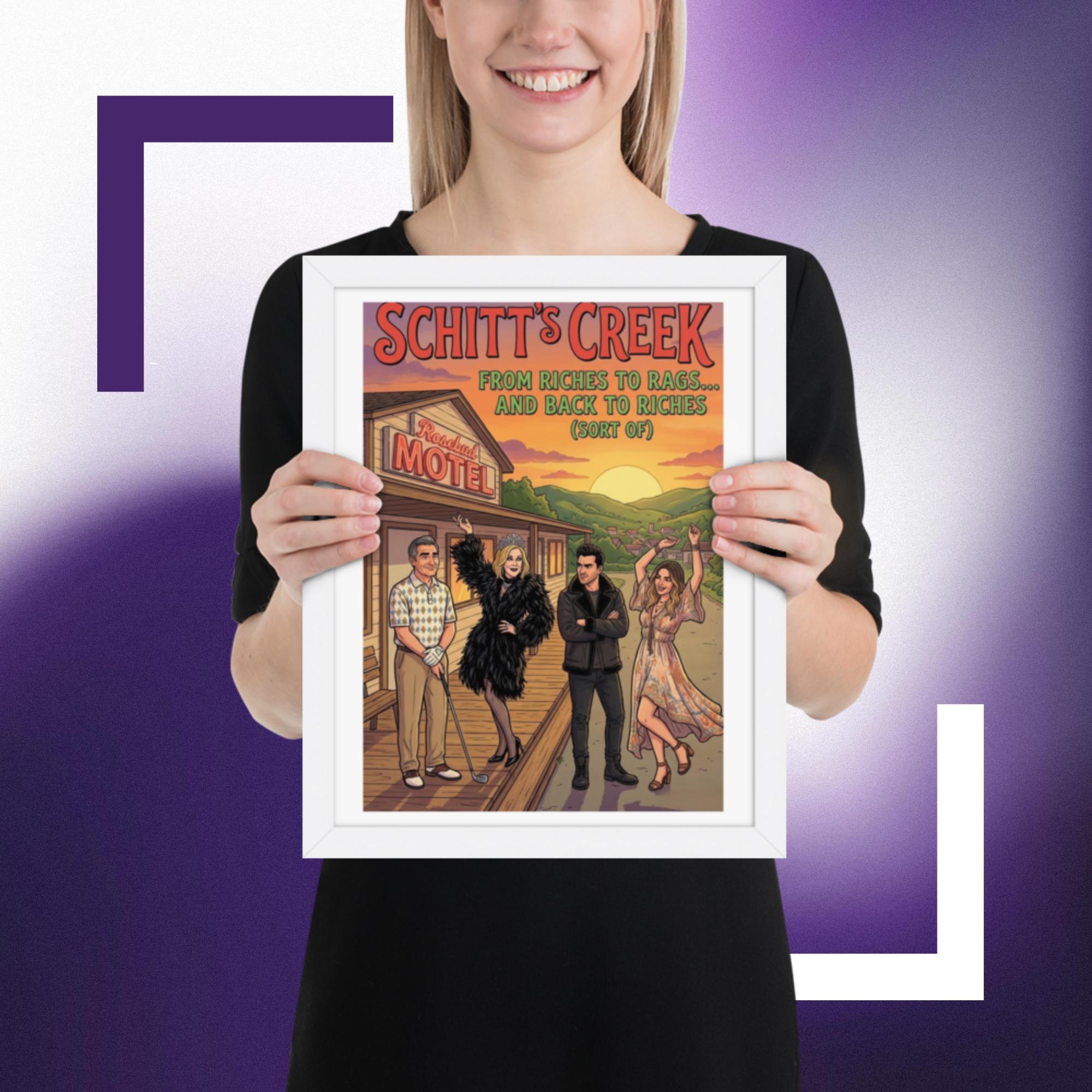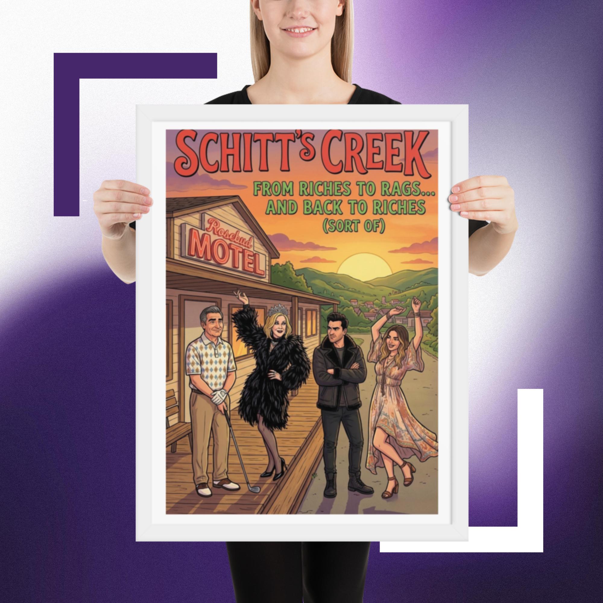 Whether you’re starting a new collection of pop culture decor or adding the final touch to your tv show wall art corner, this Rosebud Motel print fits right in and keeps your favorite scenes close.Celebrate the unforgettable journey of the Rose family with this vibrant Schitt’s Creek inspired Rosebud Motel poster print. Featuring the iconic motel backdrop and the beloved characters in a colourful, detailed illustration, this artwork perfectly captures the humour, glamour, and heart of the hit comedy series.