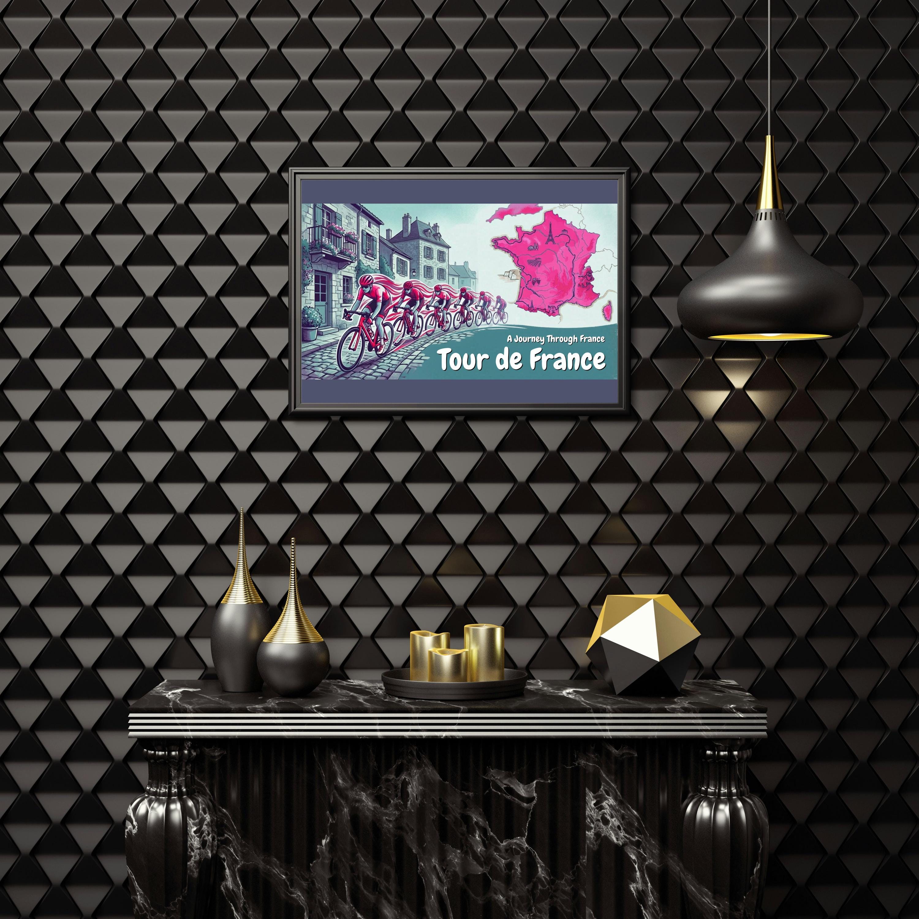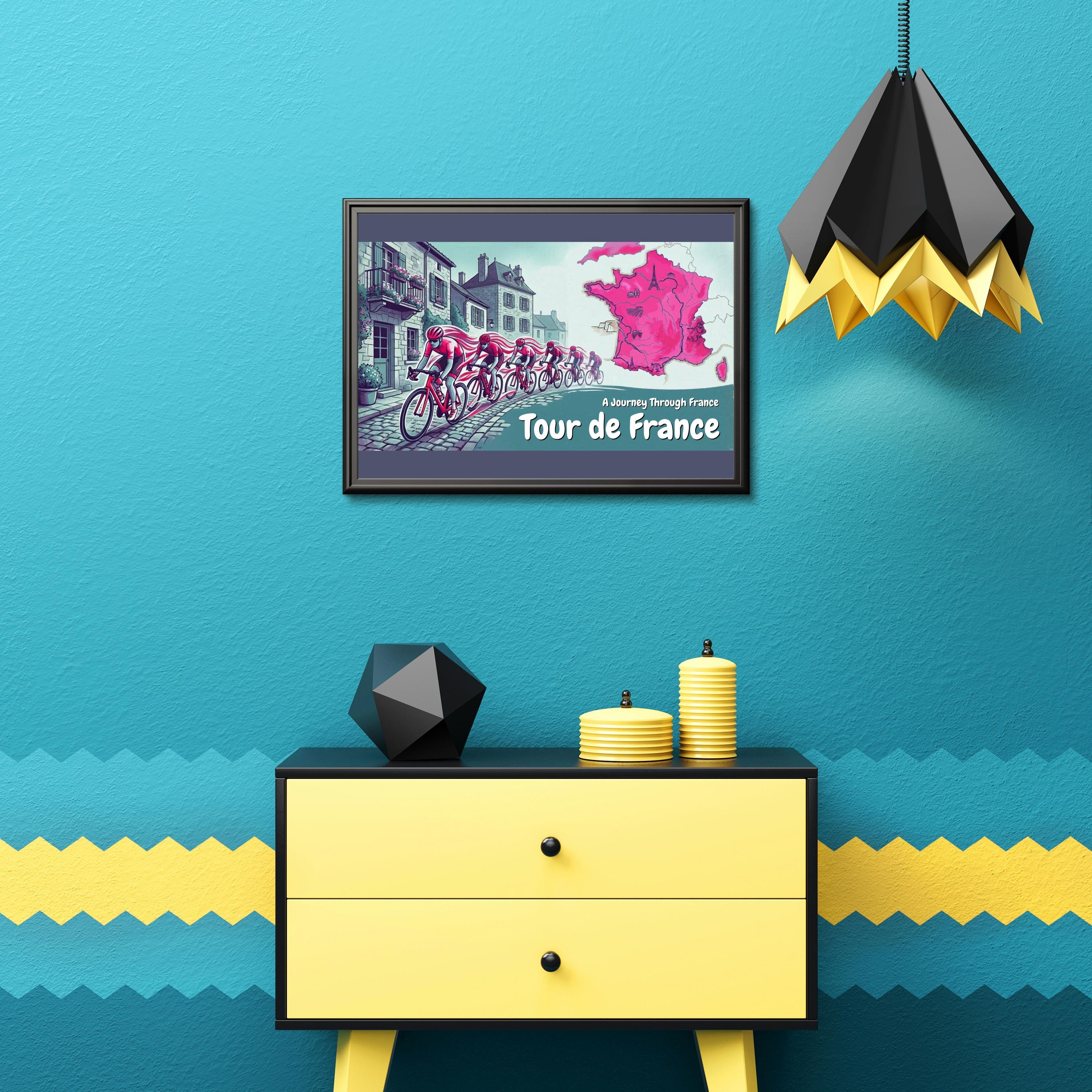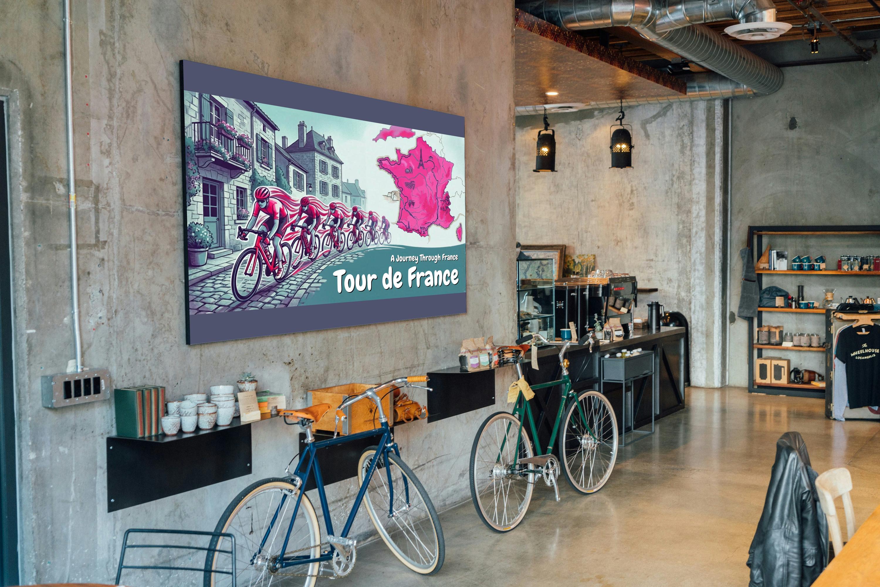 Add this Tour de France cycling artwork to your wall and celebrate the spirit of cycling adventure.