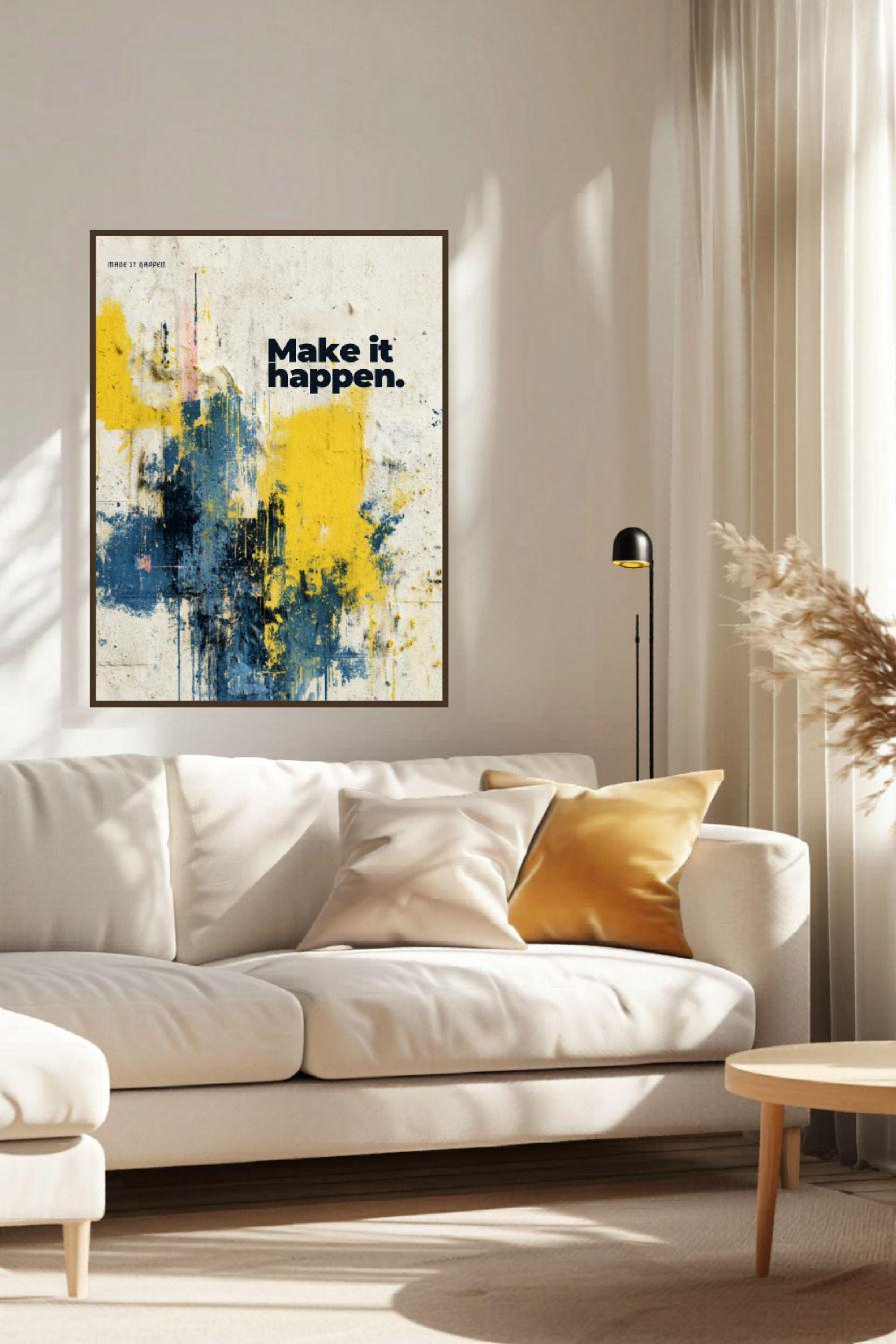 Bring energy and inspiration into your space with this vibrant graffiti wall art quote wall art poster print, designed to blend bold urban wall art expression with clean minimalist print style. Featuring striking yellow blue art colour accents on a soft natural background, this trendy wall art creates a powerful focal point while still complementing modern wall decor and scandi wall art interiors as a positive art print.