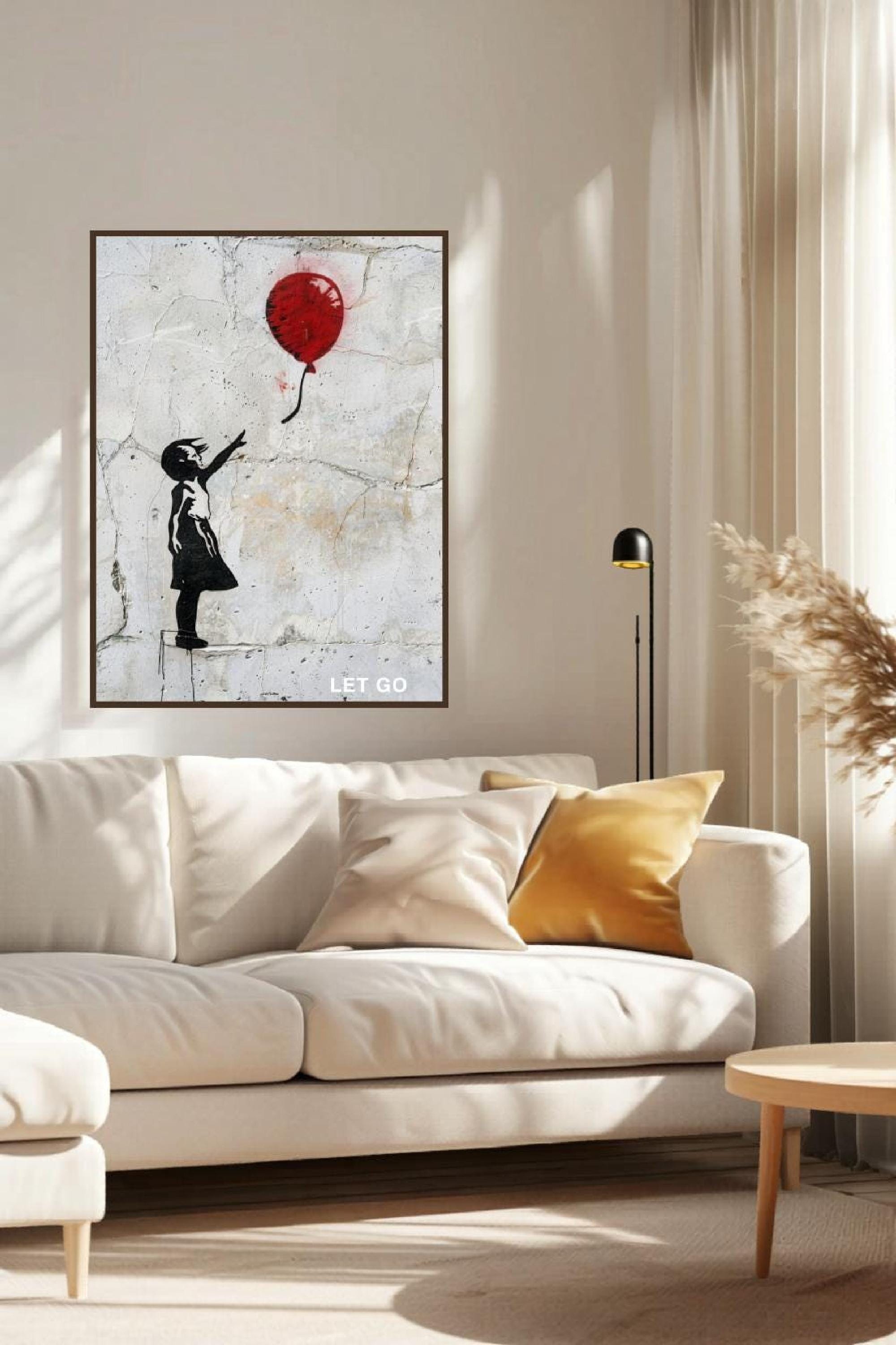 Each design focuses on a powerful visual balloon wall art moment and a short let go quote, creating an emotional connection while maintaining a refined, gallery-ready look. The neutral background and controlled colour palette give it a black white art feel that makes it easy to style in any room, from scandi wall art inspired living spaces to creative work environments that call for edgy home decor.