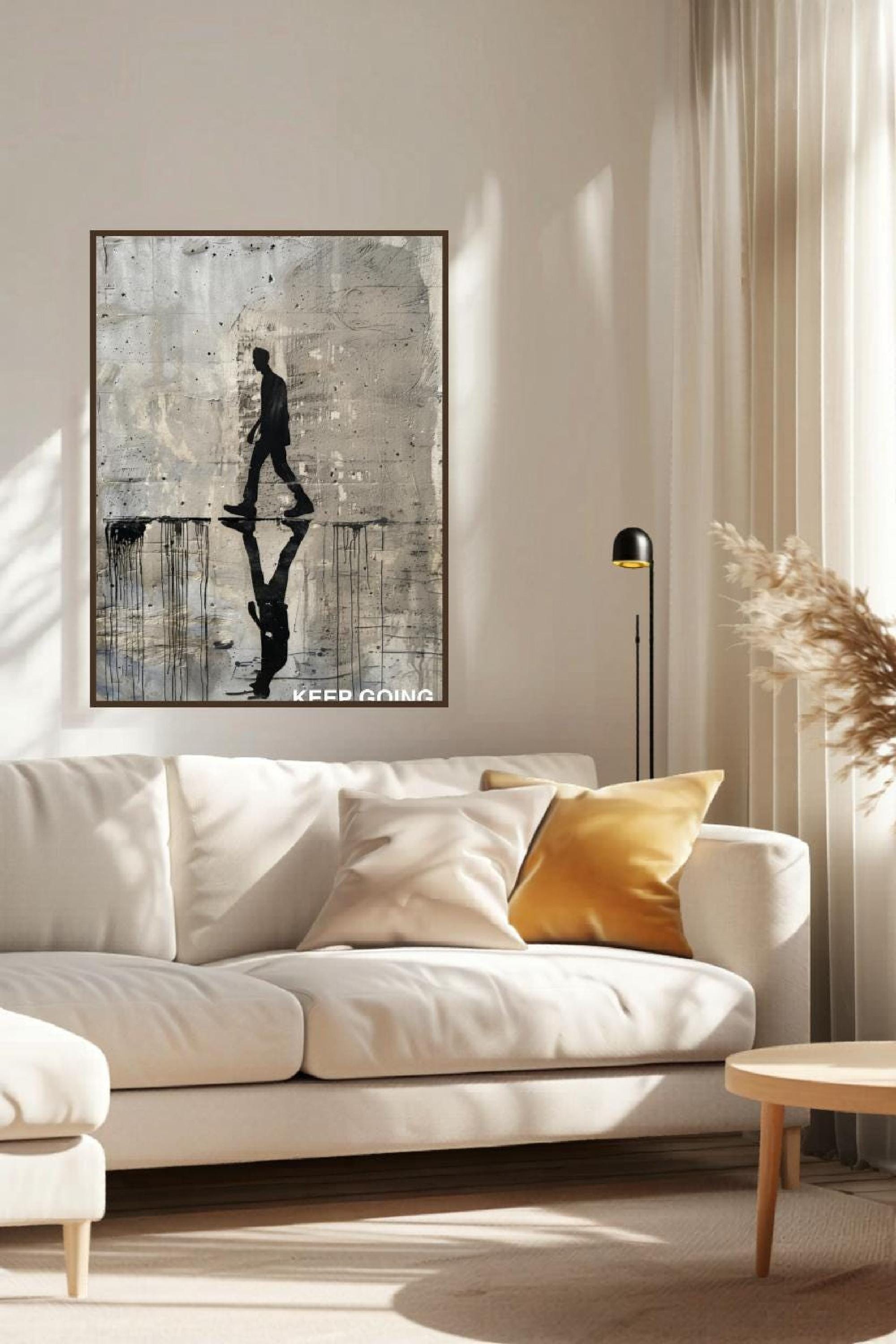 Each design focuses on a powerful visual and a short keep going quote, creating an emotional connection while maintaining a refined, gallery-ready look. The black white art design, neutral background, and controlled colour palette make this modern wall art easy to style in any room, from contemporary living spaces to creative work environments that suit scandi wall art vibes.