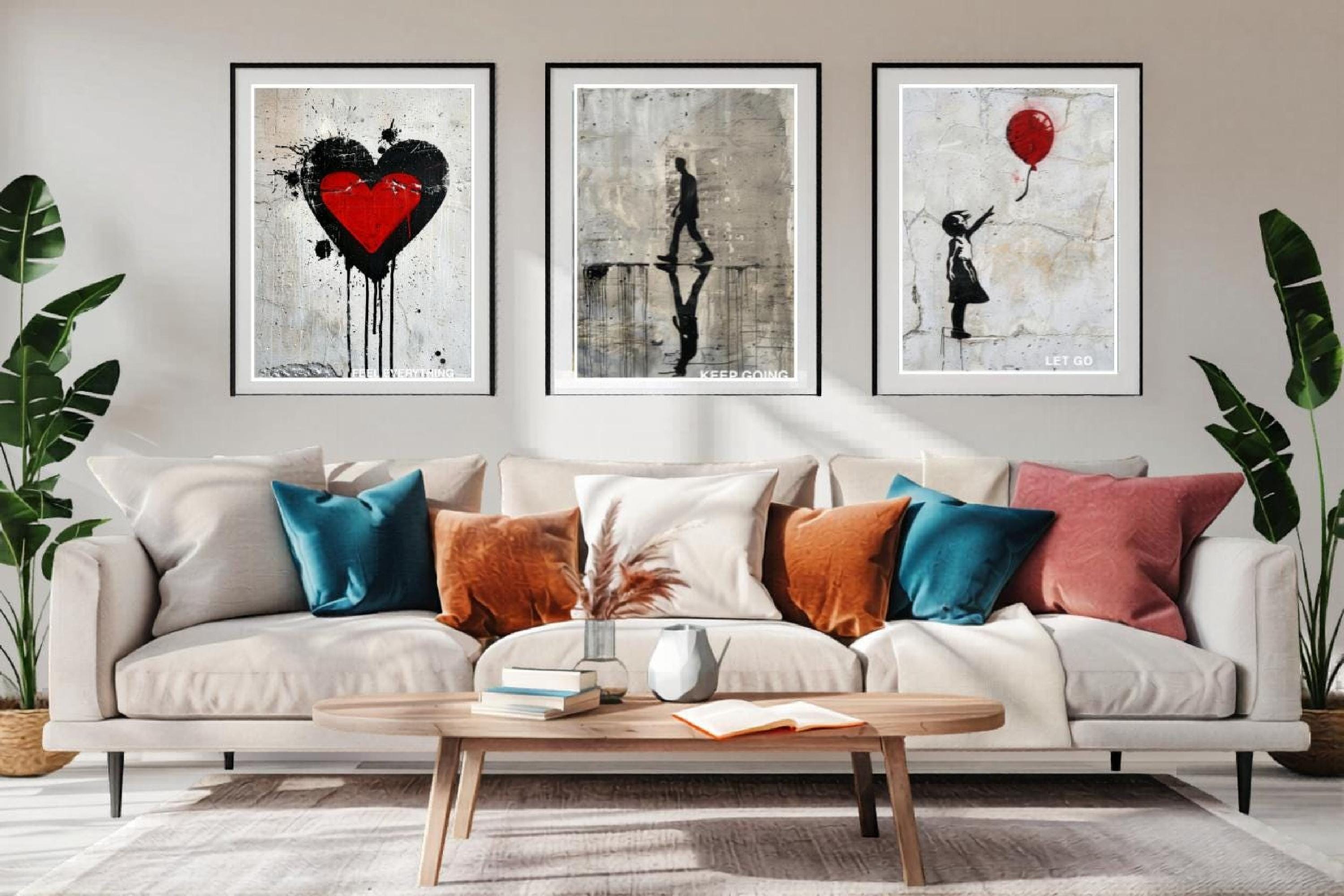 Part of a curated collection of graffiti-inspired prints and mental health art themes, designed to work together as a set of 3 or 6 for maximum visual impact as modern urban wall decor.
