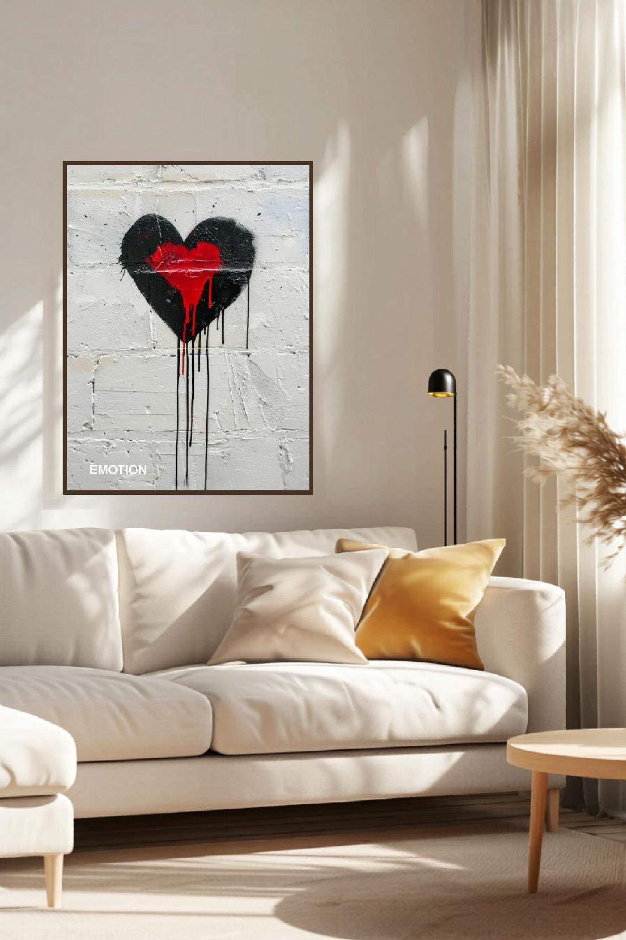 Balancing raw urban expression with refined design, this street art print uses contrast, simplicity, and negative space to create a premium, gallery-ready finish that works beautifully as statement wall art. The neutral background and punch of red wall art detail ensure it complements a wide range of interiors, from edgy home decor in contemporary living rooms to creative studios, offices, and bold urban wall decor setups.