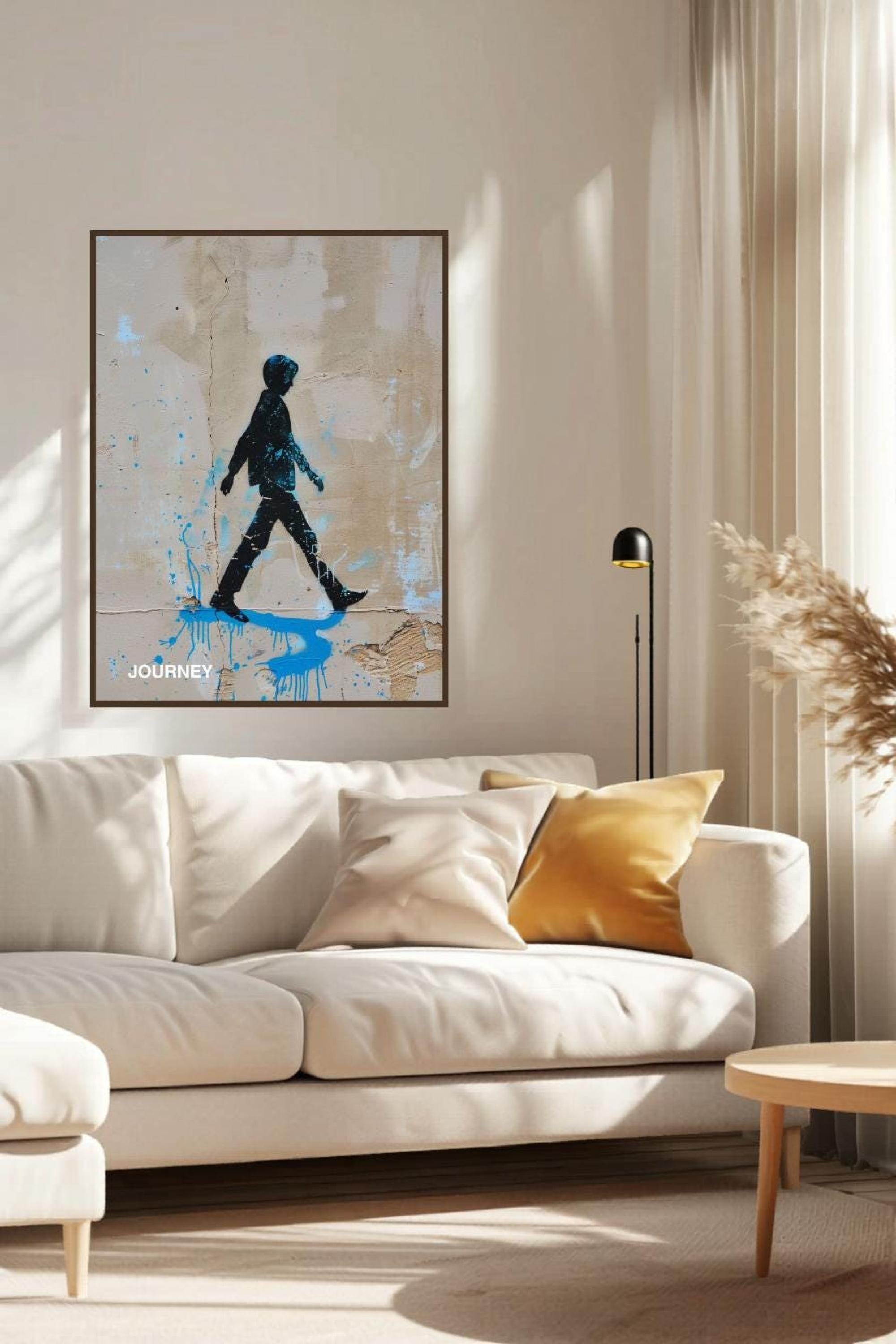 ✔ Minimalist street art print with bold colour accent