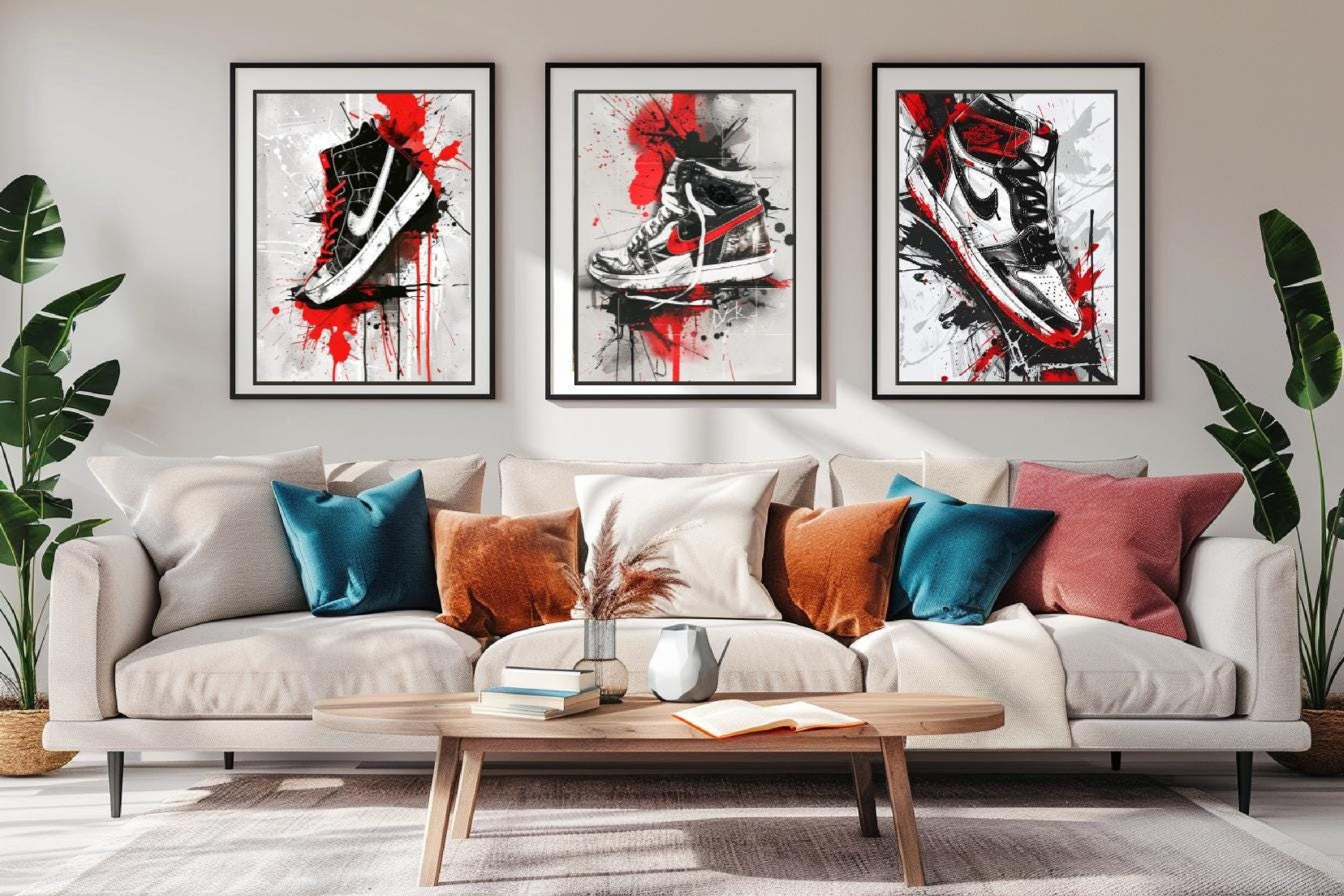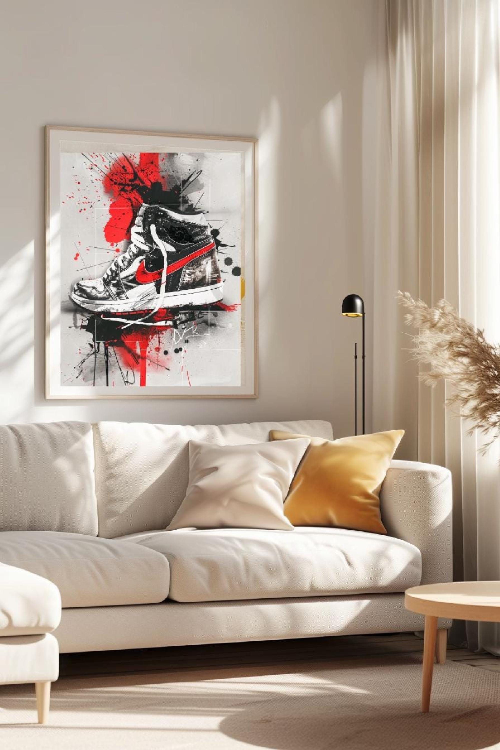 A must-have for sneaker lovers and fans of modern urban design who want streetwear art print style, sneaker art, and street graffiti art in their room gallery.
