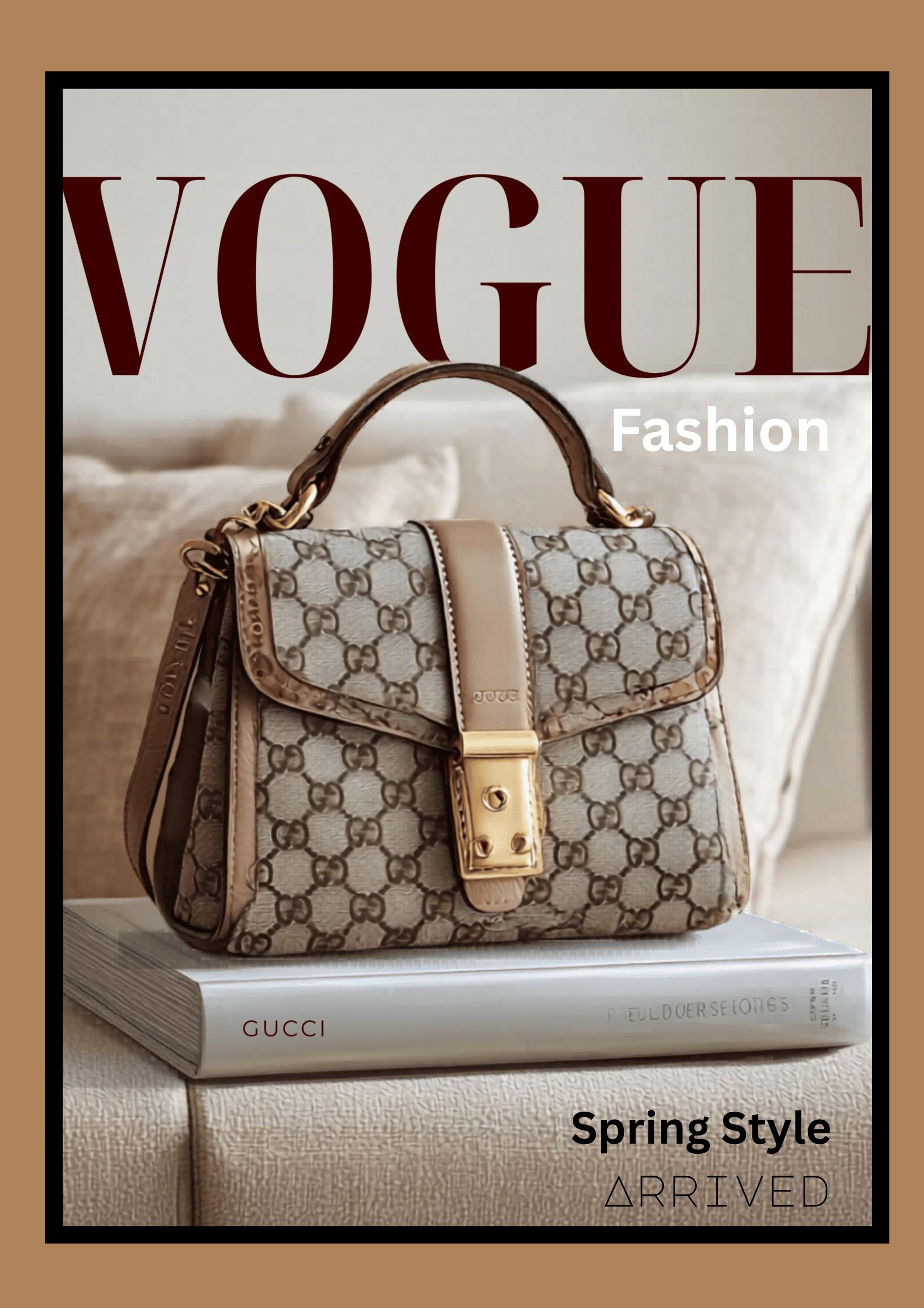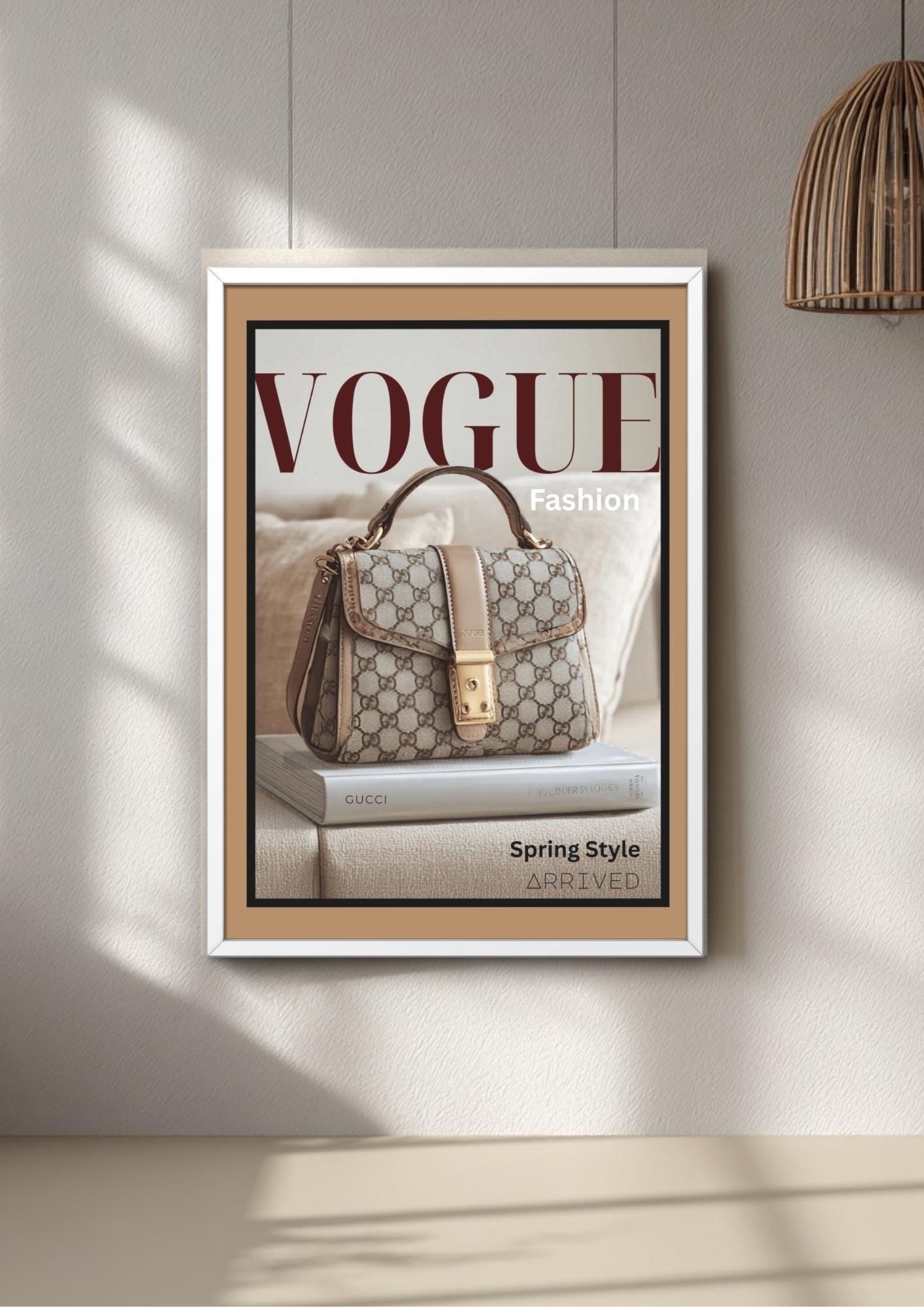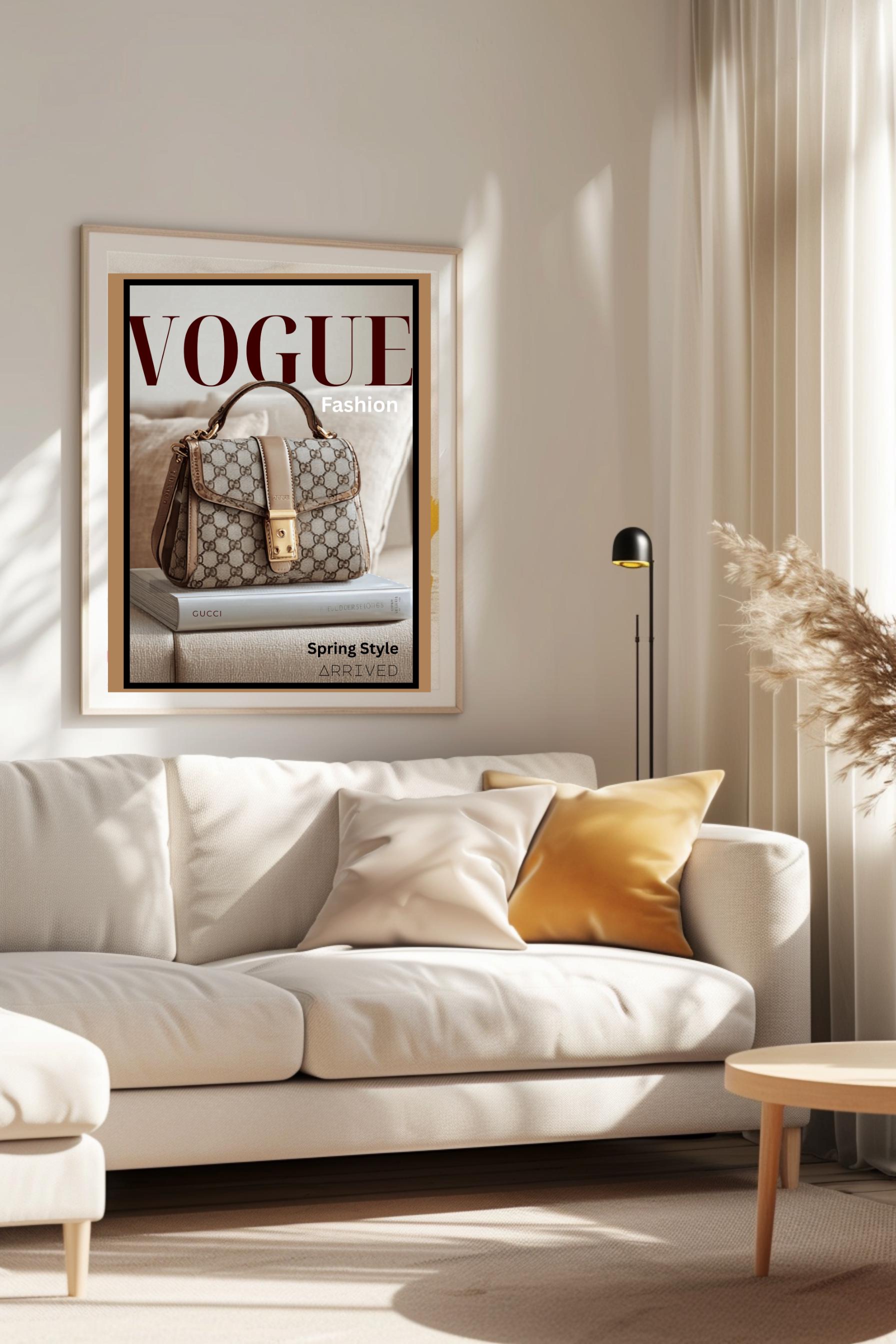 Styled to echo a modern vogue poster or gucci poster, this artwork feels like a page pulled from a high end editorial. It is perfect if you want handbag wall art that highlights your love of a timeless designer handbag without overwhelming your space.
