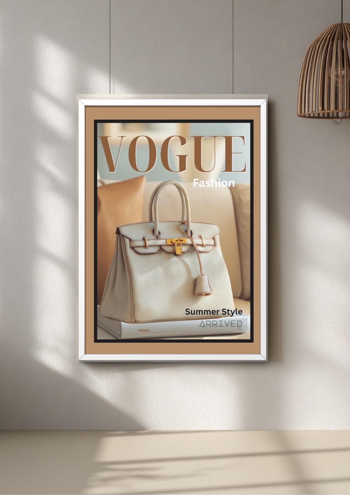 Summer Elegance is a refined fashion illustration that highlights an iconic structured tote in a clean, minimalist style. Set against warm golden tones and soft neutrals, it brings the feel of calm, sunlit interiors into your space.