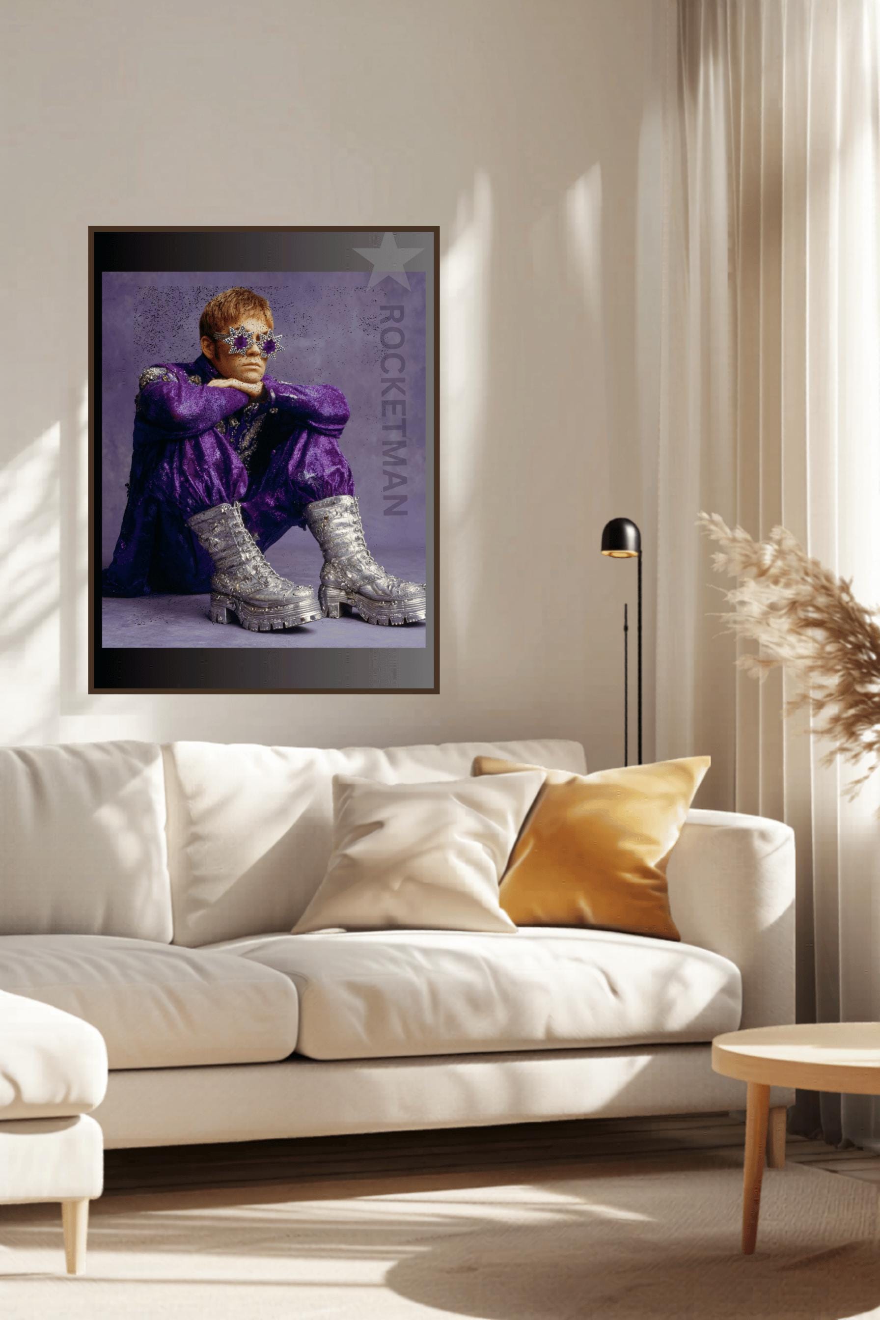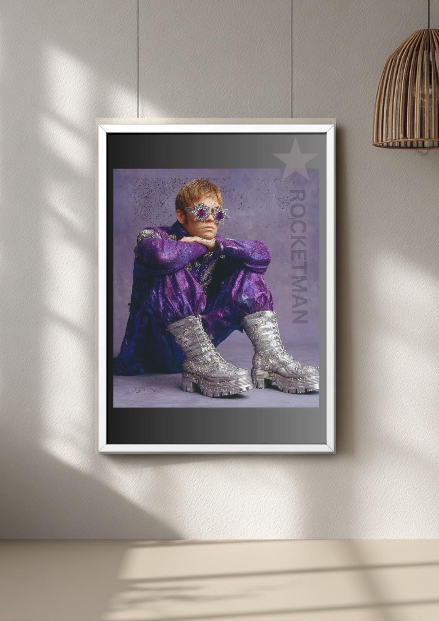 Printed on high quality, heavyweight paper, the colours stay rich and saturated so the artwork really stands out. The mix of glam rock art details and bold purple wall art tones makes this rocketman poster a lively focal point, whether you frame it or hang it as is.
