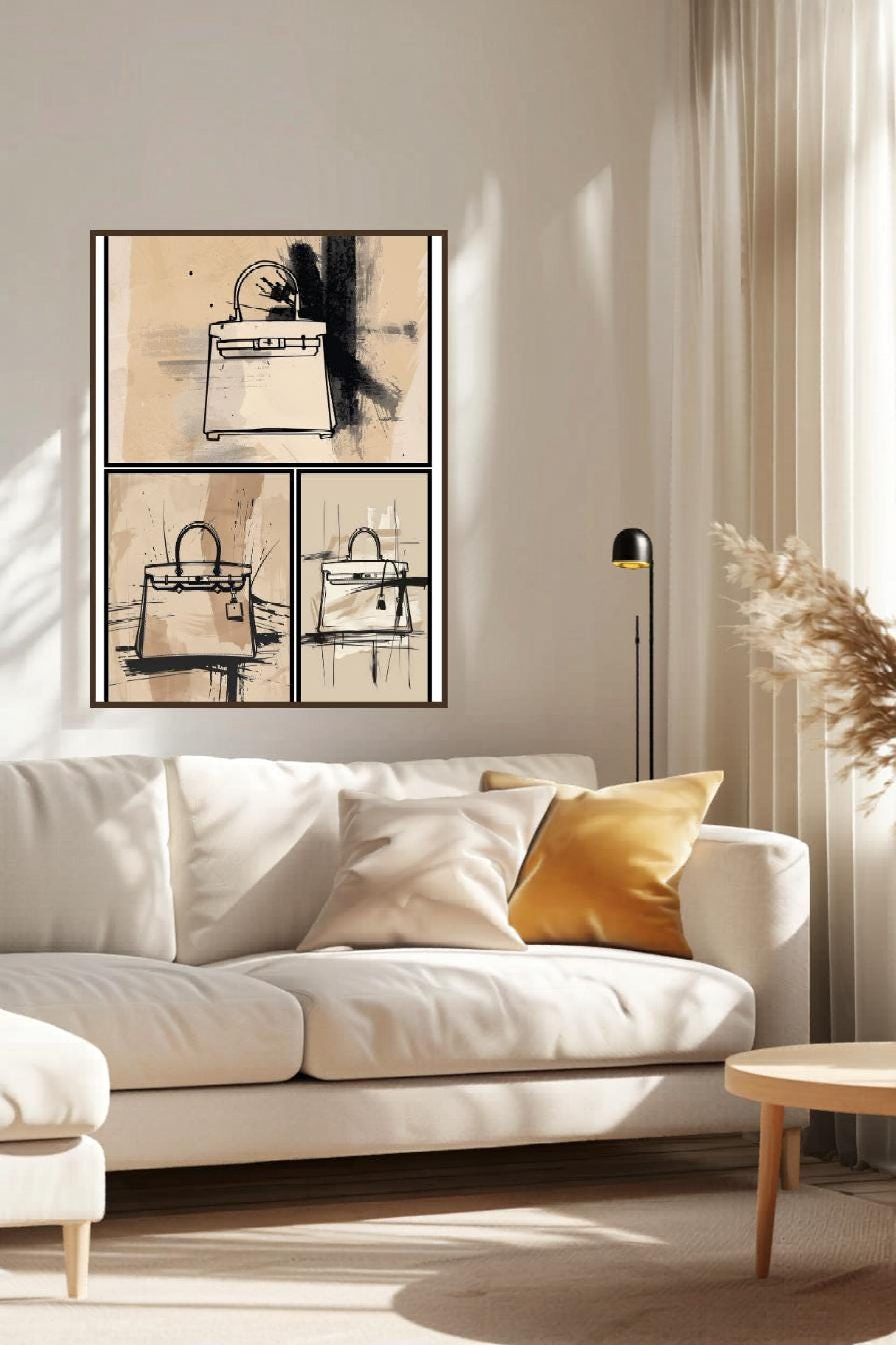 Bring a soft, stylish touch to your walls with this minimalist designer handbag print trio, created for anyone who loves fashion and calm, neutral spaces.