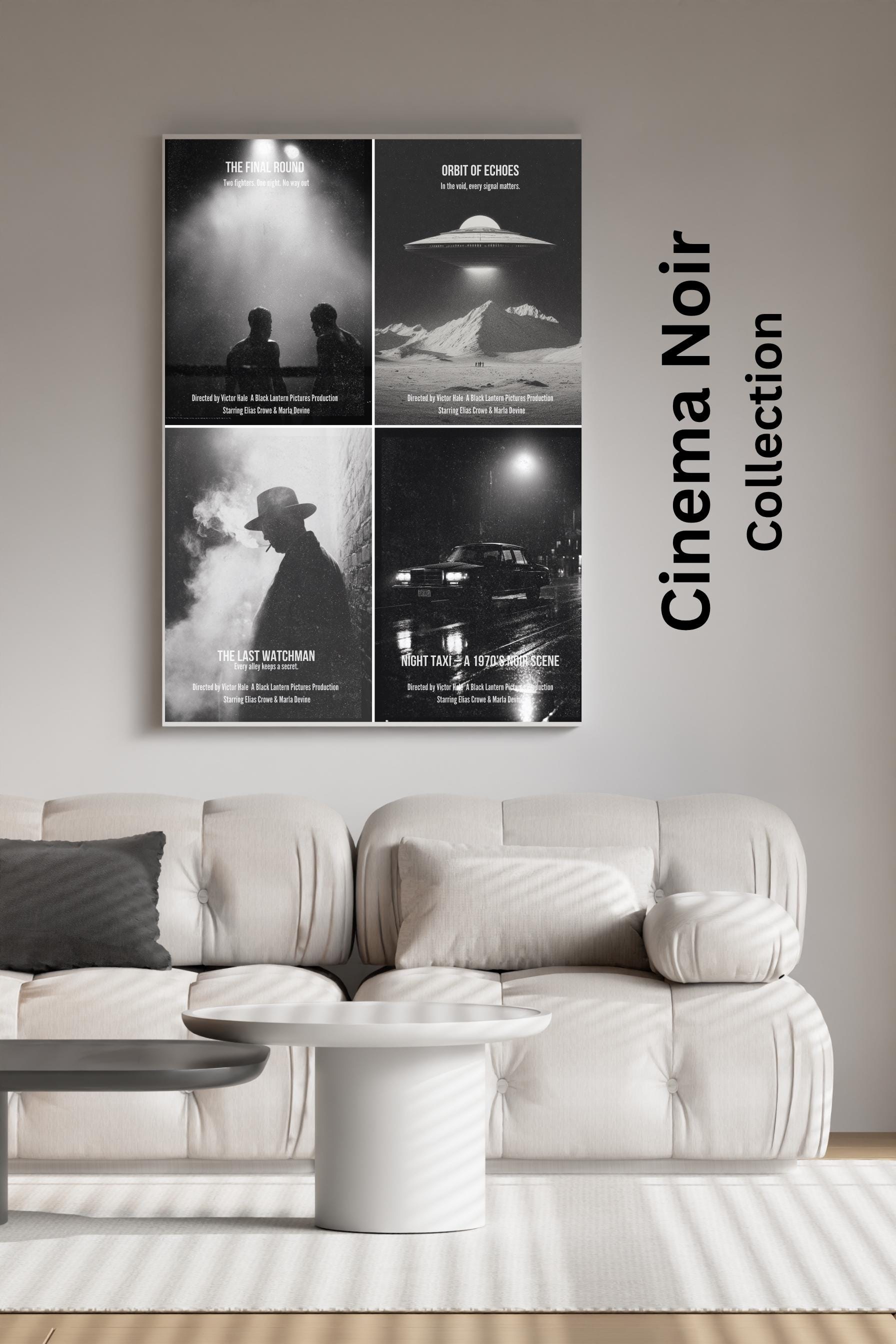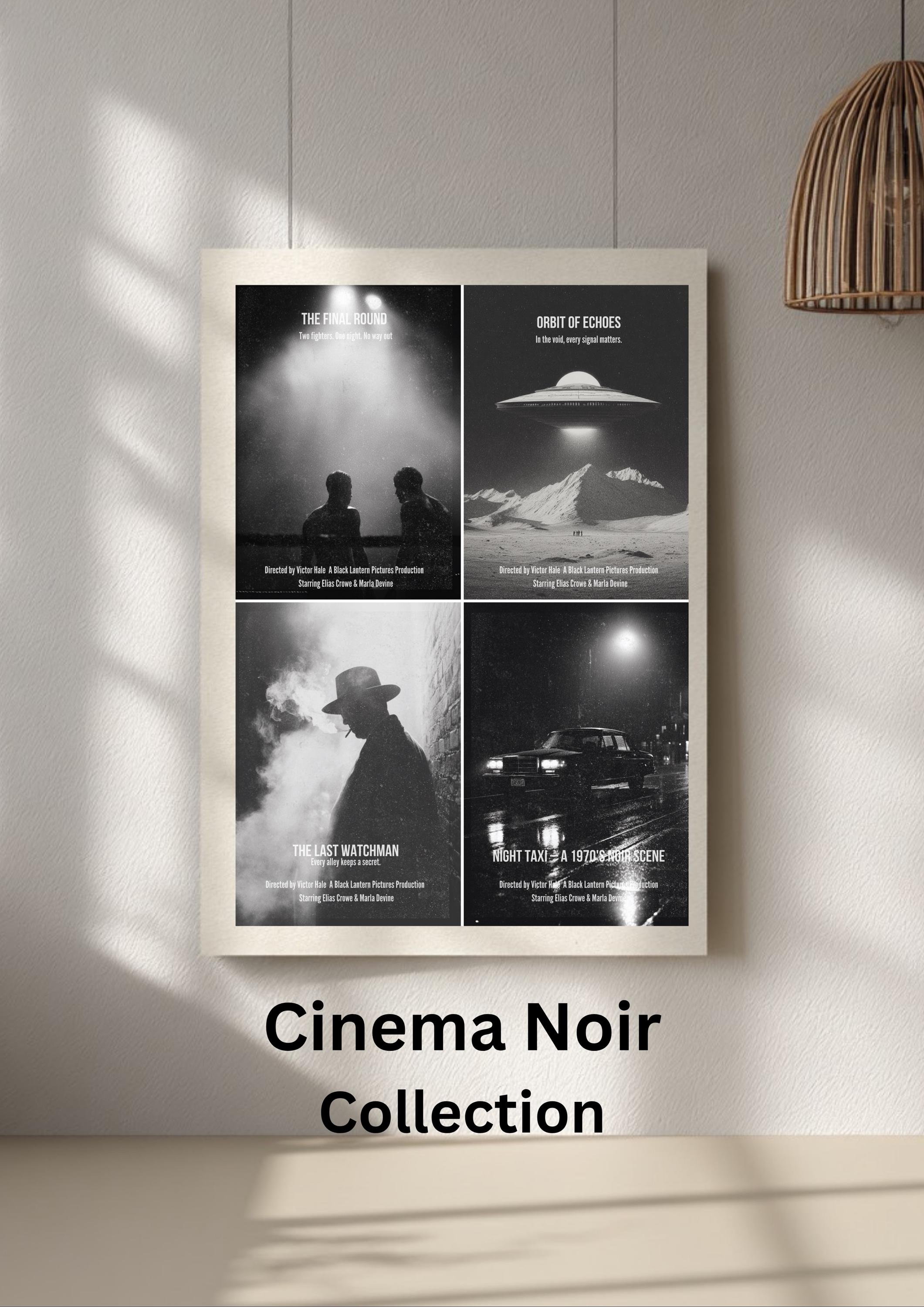 Step into the shadows with the Cinema Noir Collection, a set of original 1970's movies inspired designs that bring vintage cinema right to your walls. This movie wall art set is all about mood, character, and story, captured through dramatic black white art that feels like a lost archive from a forgotten studio.