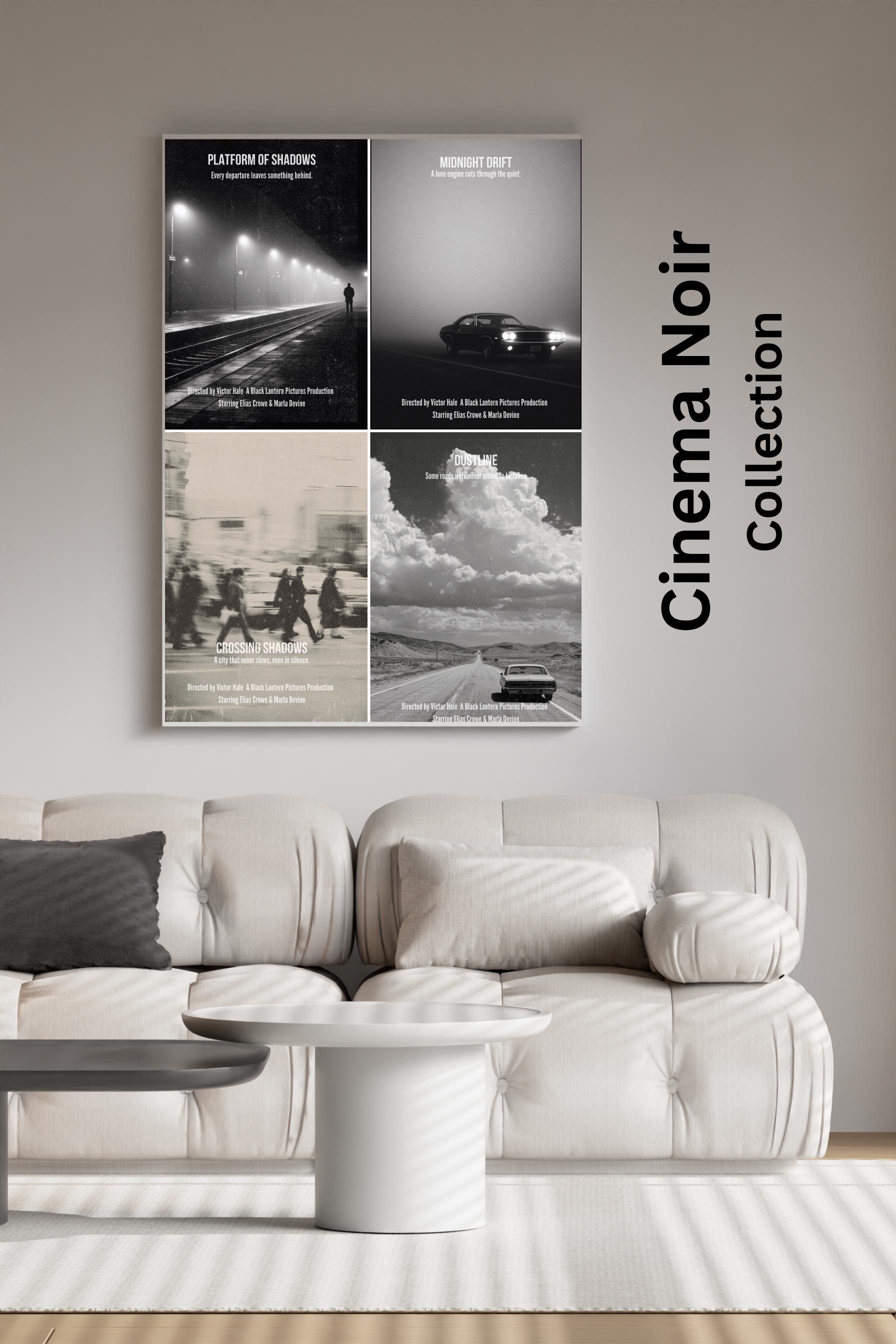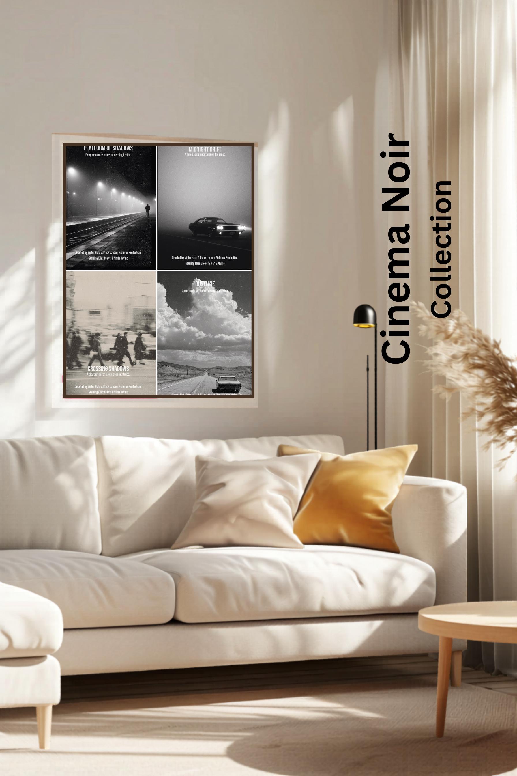 Step into the shadows with the Cinema Noir Collection, a set of original 1970's movies inspired designs that bring vintage cinema right to your walls. This movie wall art set is all about mood, character, and story, captured through dramatic black white art that feels like a lost archive from a forgotten studio.